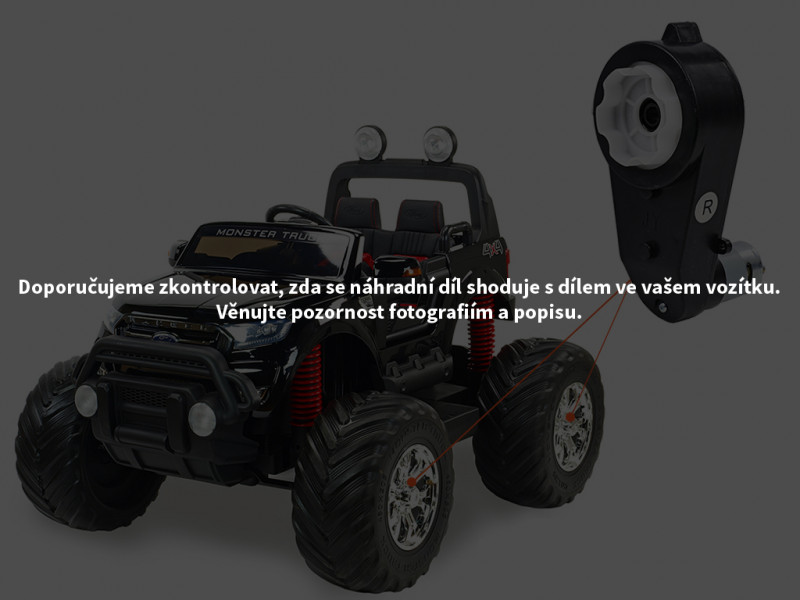 Náhradný elektrický motor s prevodovkou je určený pre detské elektrické autíčko Ford Ranger Monster Truck 4x4 a slúži na pohon kolies. Motor s prevodovkou je možné nasadiť na os s priemerom 16 mm.
