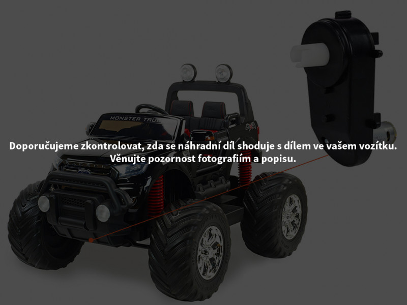 Náhradný elektrický motor s prevodovkou je určený pre detské elektrické autíčko Ford Ranger Monster Truck 4x4 a slúži na ovládanie volantu pomocou diaľkového ovládača. Motor s prevodovkou je možné nasadiť na os s priemerom 10 mm.
