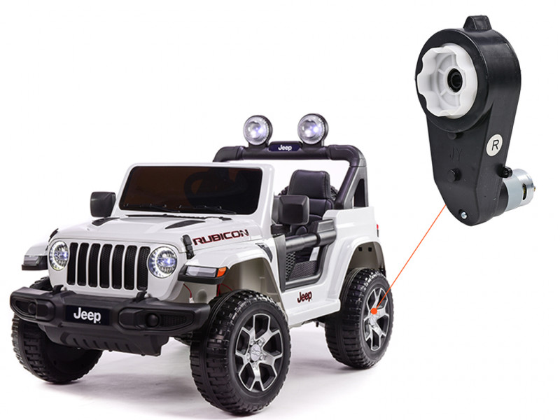Náhradný elektrický motor s prevodovkou je určený pre detské elektrické autíčko Jeep Wrangler Rubicon 4x4 a slúži na pohon kolies. Motor s prevodovkou je možné nasadiť na os s priemerom 12 mm.
