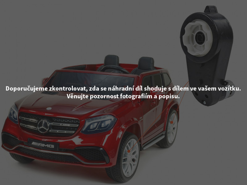 Náhradný elektrický motor s prevodovkou je určený pre detské elektrické autíčko Mercedes-Benz GLS63 4x4 a slúži na pohon kolies. Motor s prevodovkou je možné nasadiť na os s priemerom 12 mm.