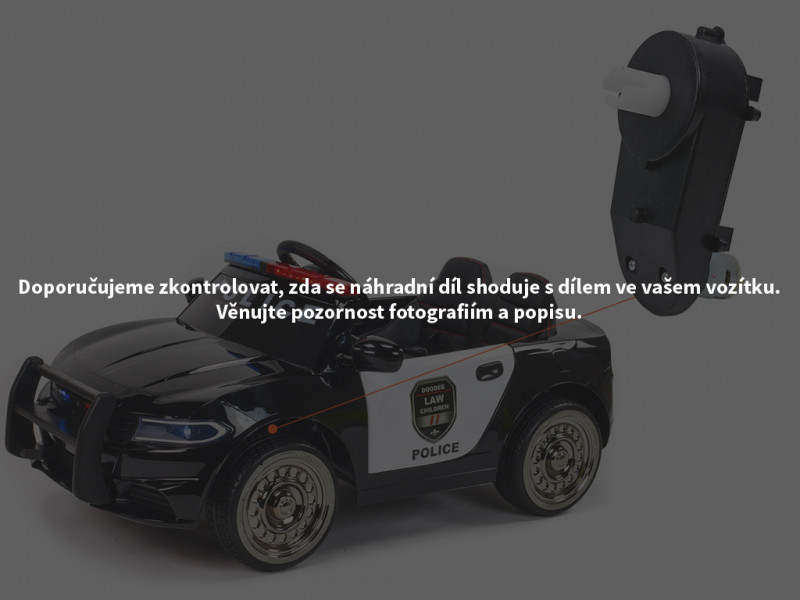 Náhradný elektrický motor s prevodovkou je určený pre detské elektrické autíčko Polícia USA 911 a slúži na ovládanie volantu pomocou diaľkového ovládača. Motor s prevodovkou je možné nasadiť na os s priemerom 10 mm.