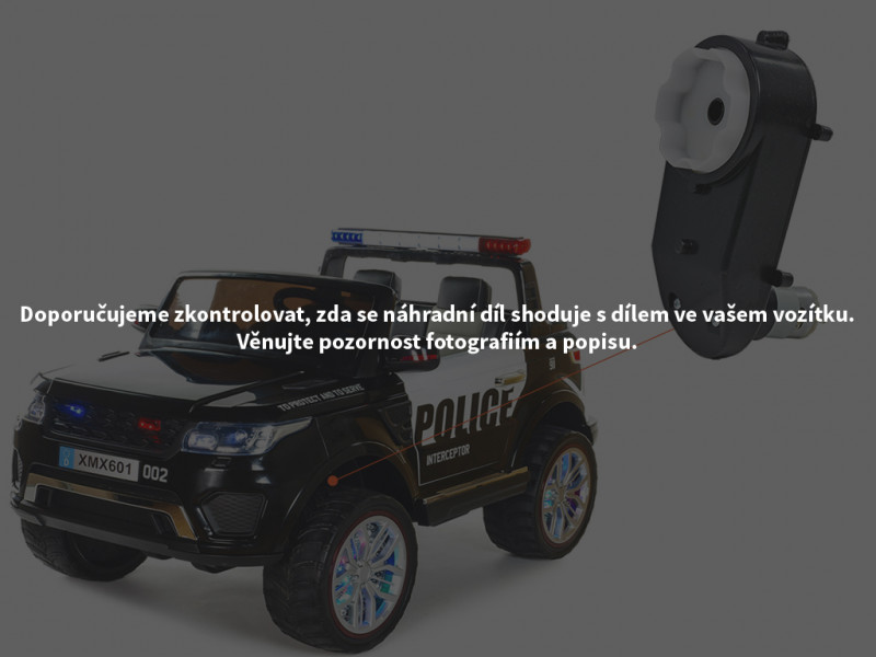 Náhradný elektrický motor s prevodovkou je určený pre detské elektrické autíčko Rover Polícia 4x4 a slúži na ovládanie volantu pomocou diaľkového ovládača. Motor s prevodovkou je možné nasadiť na os s priemerom 10 mm.