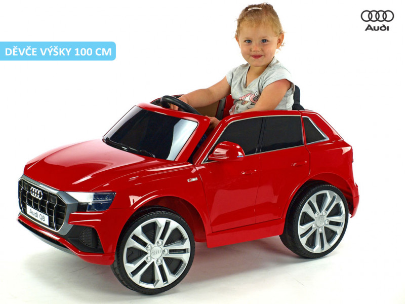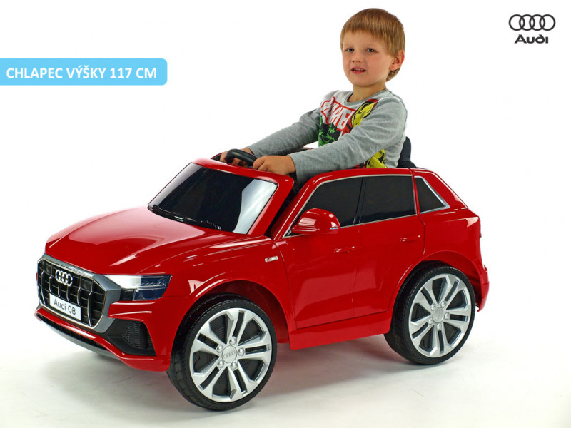 Licenčné detské autíčko v červenom prevedení s originálnymi znakmi a logom značky Audi je skvelou voľbou pre chlapcov aj dievčatá. Vozítko je detailne prepracovanou zmenšeninou skutočného modelu auta Audi Q8 a okrem svojho krásneho designu deti zaručene nadchne aj svojou výbavou. Autíčko je vybavené dvoma elektrickými motormi (2x 12V / 35W), ktoré zaisťujú pohon oboch zadných kolies. O pohodlie vodiča je postarané vďaka čalúnenej sedačke a odpruženej zadnej náprave. Okrem toho sú všetky kolesá vyrobené z EVA polyméru - mäkkého a pružného materiálu s vynikajúcimi tlmiacimi vlastnosťami. Veľkou prednosťou autíčka sú štýlové svetlá , ktoré predstavujú vernú imitáciu osvetlenia reálnej Audi Q8. Vo výbave sú hlavné predné svetlá, zadné svetlá a efektná LED lišta , ktorá osvetľuje celý zadok autíčka. Audi Q8 je vhodná pre deti od 3 do 6 rokov (prípadne do 8 rokov pre deti drobnejšie postavy).