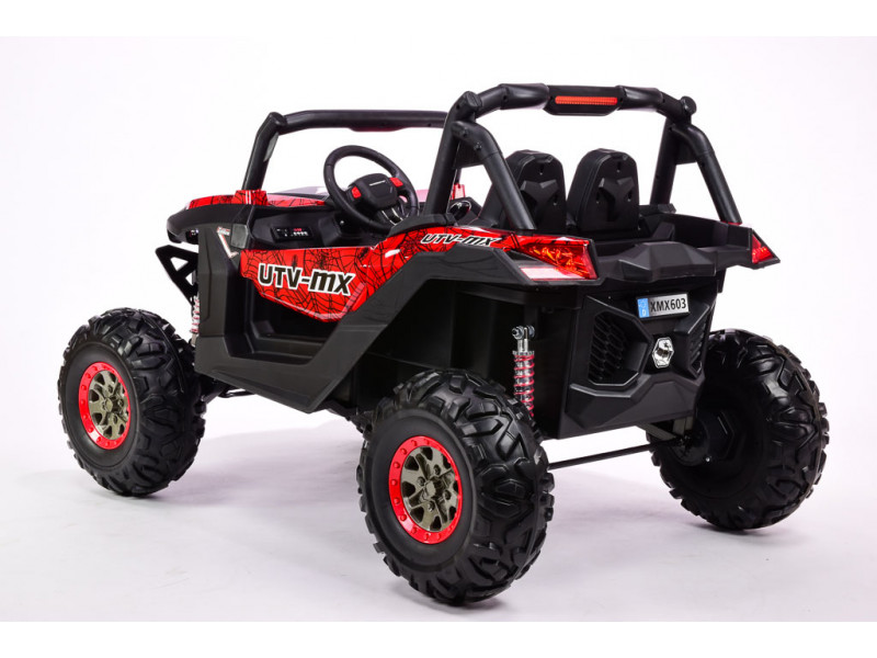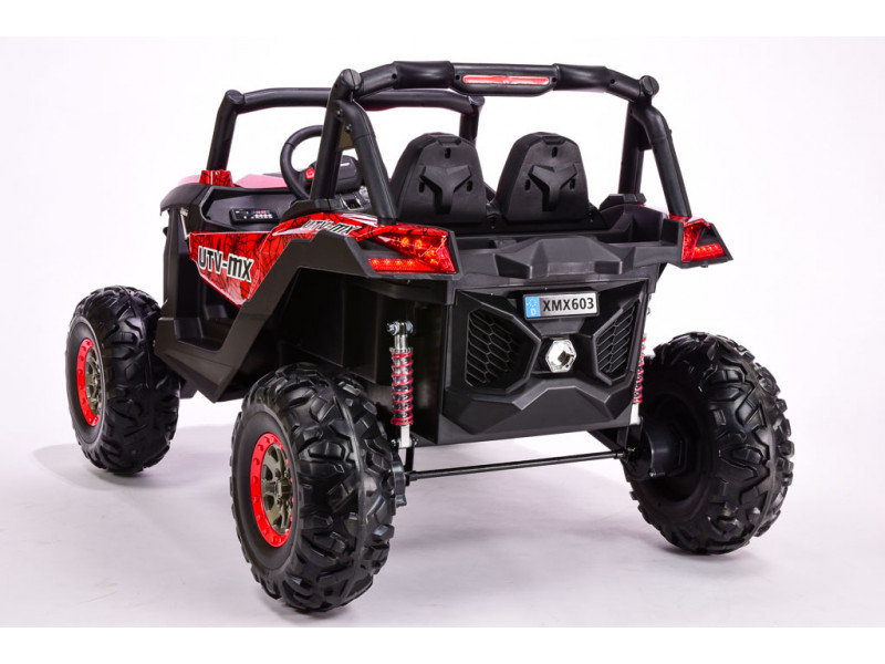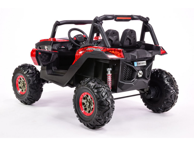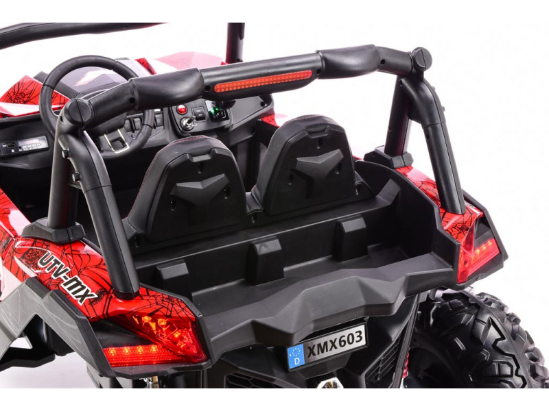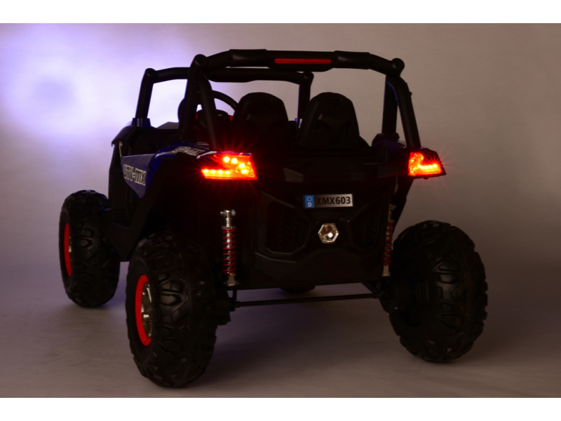 Máte doma malých pretekárov a premýšľate, čím ich prekvapiť? Zaobstarajte im realistickú dvojmiestnu buginu z obľúbenej série detských vozidiel X-MAX a zaručujeme vám, že na tento darček len tak nezabudnú. Bugina je vybavená štyrmi elektrickými motormi, ktoré zaisťujú pohon všetkých kolies. Na úsporu batérií sa však ponúka aj možnosť vypnutia predných motorov. Stlačením tlačidla na palubke tak možno prepínať medzi pohonom 4x4 a pohonom čisto zadných kolies . Súčasťou výavy je ďalej aj pohodlná čalúnená sedačka , vďaka ktorej bude jazda príjemná aj po dvojhodinovej ceste. Obe nápravy sú odpružené kvalitnými tlmičmi, pri ktorých je možné nastaviť tuhosť pérovania. Všetky kolesá sú vyrobené z EVA polyméru - materiálu na báze gumy, vyznačujúcim sa veľmi nízkou hmotnosťou a vynikajúcimi tlmiacimi vlastnosťami. K svojej bugine deti dostanú vlastné štartovacie klíčky. Povrch buginy tvorí špeciálny polymérový poťah, dodávajúci vozidlu lesk. Odporúčaný vek je 3-8 rokov.
