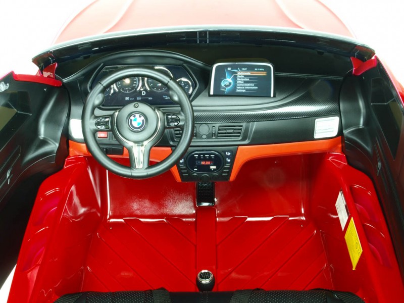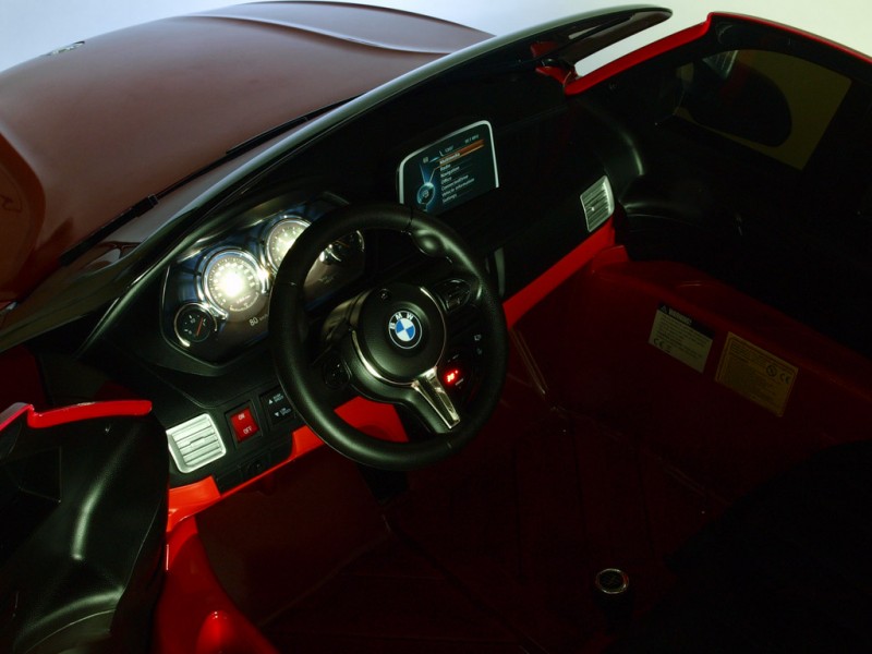 2 motory 12 V/120 W, batéria 12 V/10 Ah, náhon oboch zadných kolies, 2.4G diaľkové ovládanie s funkciou plnej kontroly, 3 rýchlosti vpred a 3 vzad, plynulé rozjazdy, AUX a USB vstup, predné a zadné LED svetlá, osvetlené palubné prístroje, zvukové efekty, klaksón, čalúnená sedačka, EVA kolesá, otvárateľné dvere, voltmeter, lakované, licencie BMW, dvojmiestne Celý popis