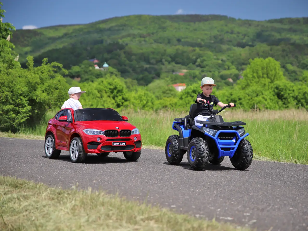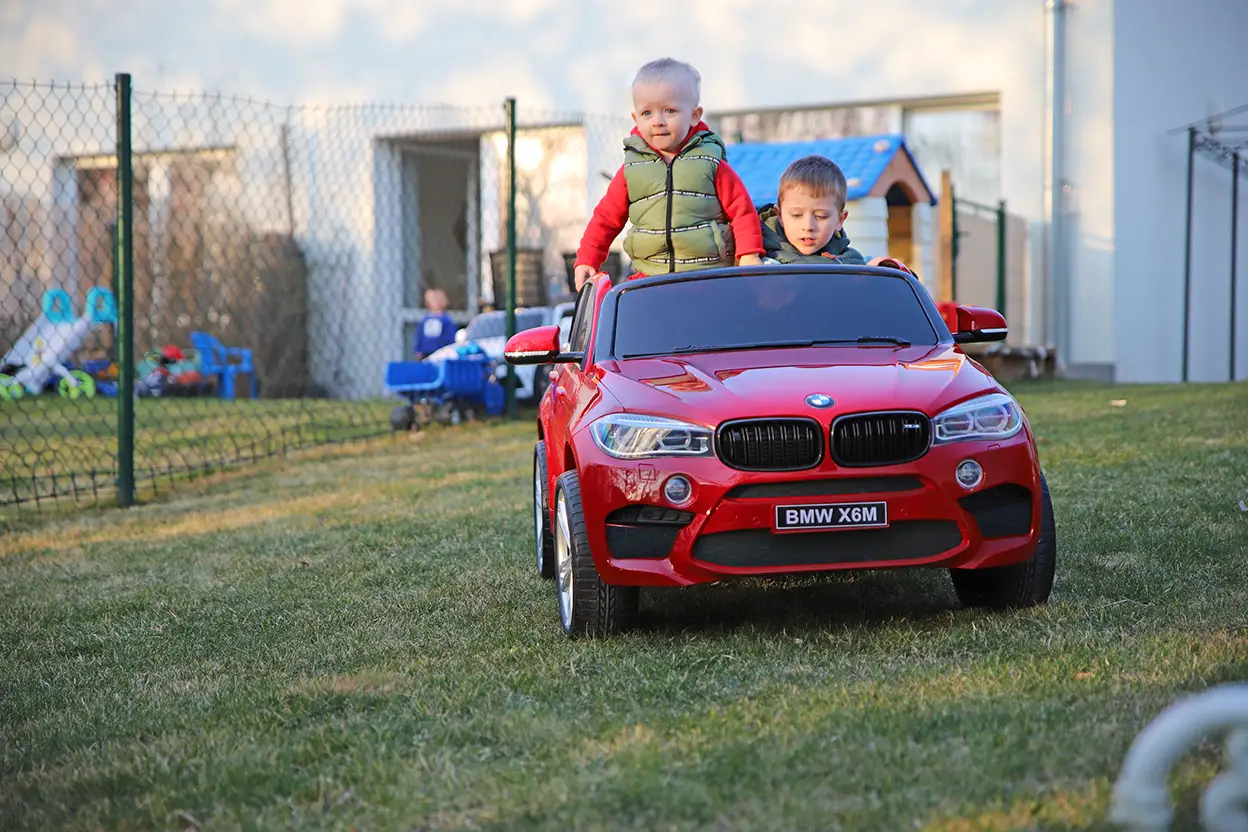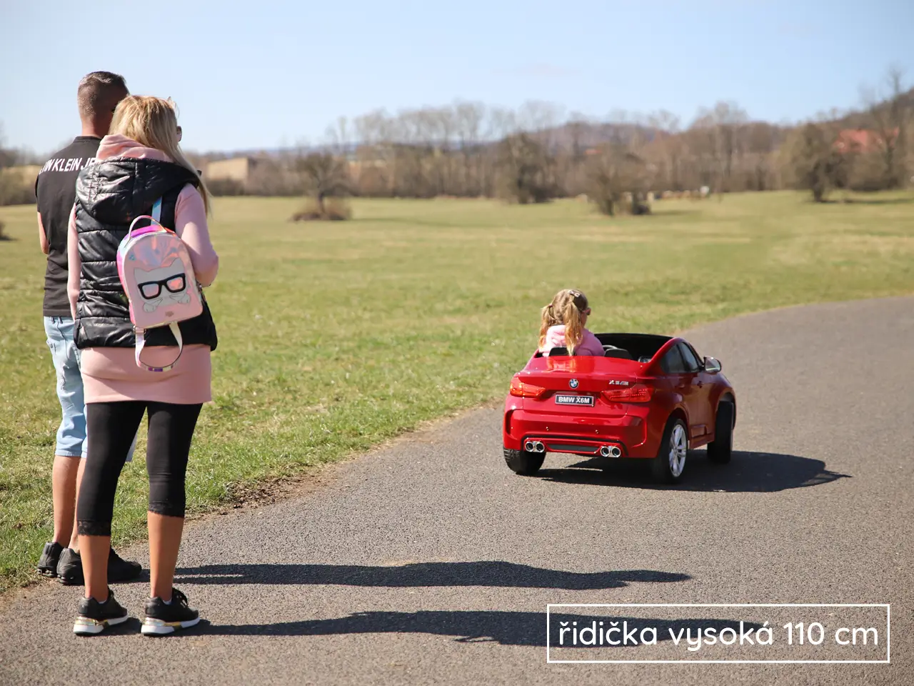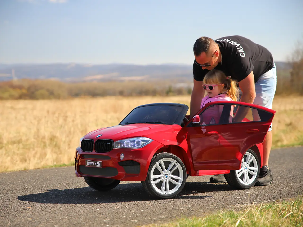 Jazdu v detailne prepracovanom zmenšenom modeli auta BMW X6 M si naplno užije každý malý vodič. Ide o jedno z najväčších detských vozítok v ponuke. Autíčko disponuje dvojmiestnou čalúnenou sedačkou, ktorá je opatrená dvoma nastaviteľnými bezpečnostnými pásmi. Deti si tak môžu zariadiť spoločne a zároveň budú plne v bezpečí. BMW X6 M predstavuje najmodernejší rad elektrických autíčok , novo vybavených elektrickou bzrdou. Konštrukcia a ovládanie vozítka boli uspôsobené tak, aby si riadenie ľahko a rýchlo osvojili aj tí najmenší. Stačí iba nasadnúť, zapnúť pás a zošliapnuť nožný pedál. Autíčko sa potom plynule a bez trhnutia rozbehne, uvoľnením pedála potom samo zabrzdí. Dva elektrické motory (2x 120 W/12 V) poháňa obe zadné kolesá a ponúka možnosť voľby 3 rýchlostí vpred a 3 vzad. Vo výbave deti ďalej nájdu svietiace LED svetlá (predné aj zadné) a dva osvetlené palubné prístroje. Pre pohodlnejšiu jazdu sú všetky kolesá gumové, vyrobené z EVA materiálu. Dvere s úložnými priestormi sú otvárateľné.