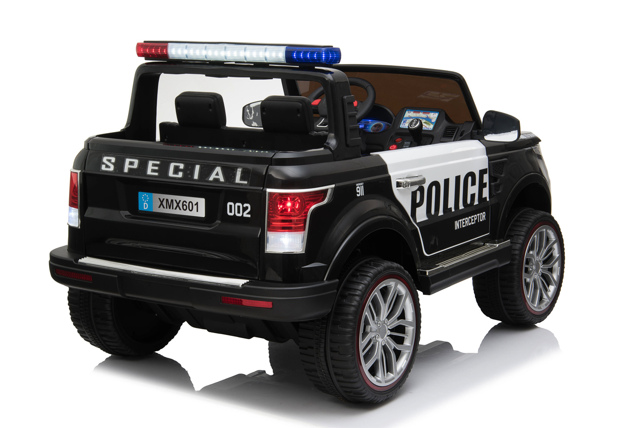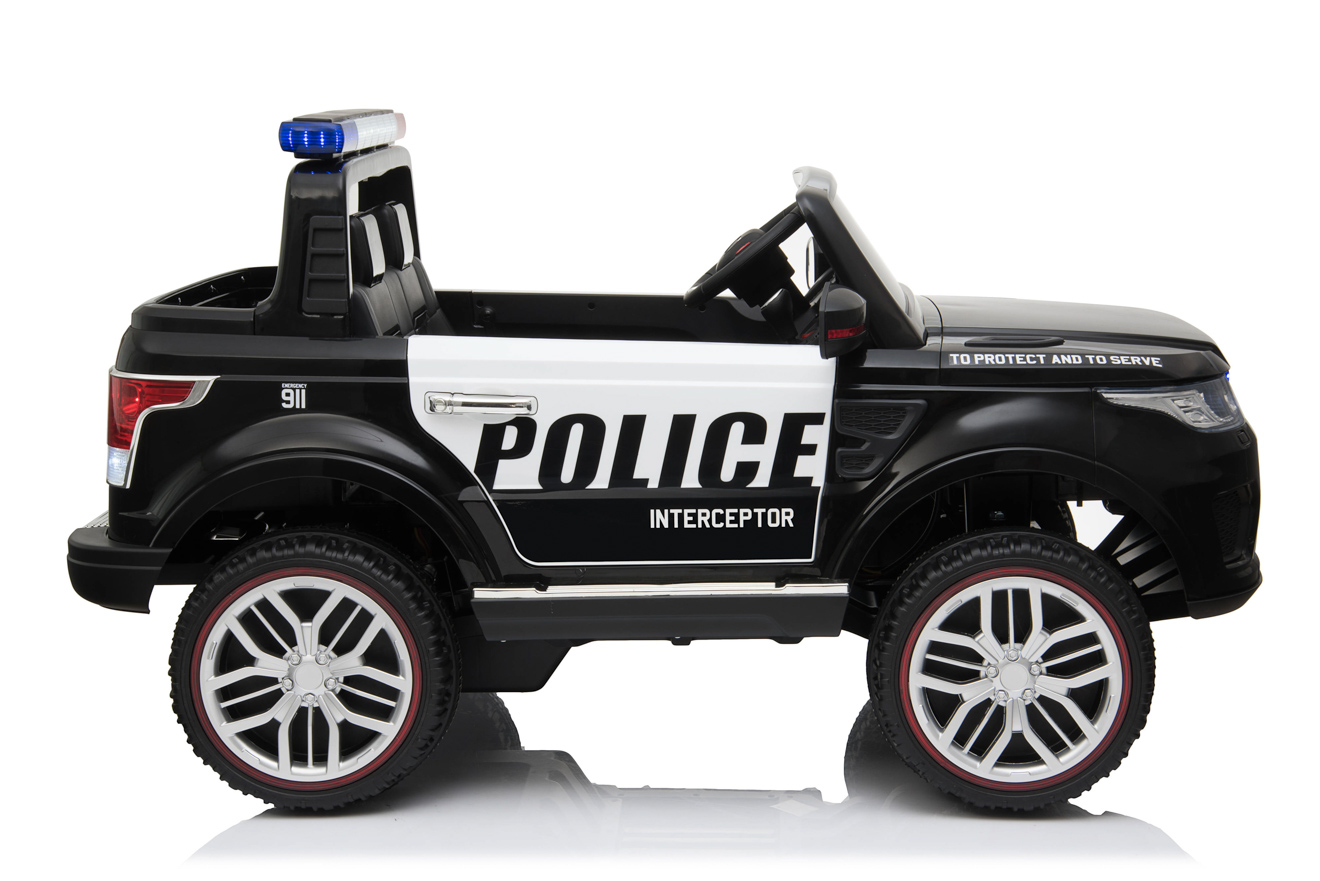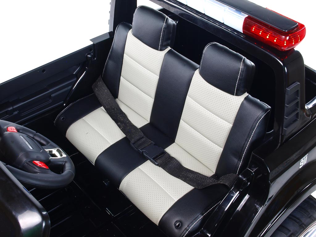 4 motory 12V/45W, batéria 12V/10Ah, pohon všetkých kolies, prepínač pohonu 2x2 a 4x4, 2.4G diaľkový ovládač s funkciou plnej kontroly, EVA kolesá, 2 rýchlosti na manuál, 3 rýchlosti na diaľkové ovládacie, policajné LED osvetlenie, zvukové efekty , klaksón, siréna, AUX/USB/SD, odpružená zadná náprava, otvárateľné dvere, ukazovateľ stavu batérie, zadný úložný priestor, polstrovaná sedačka, madlo na ... Celý popis