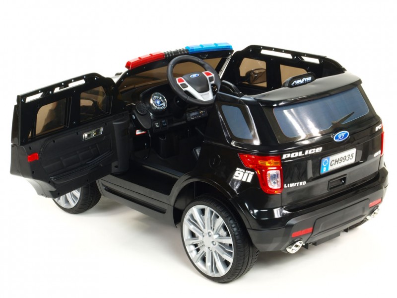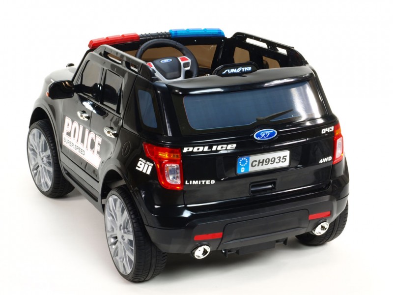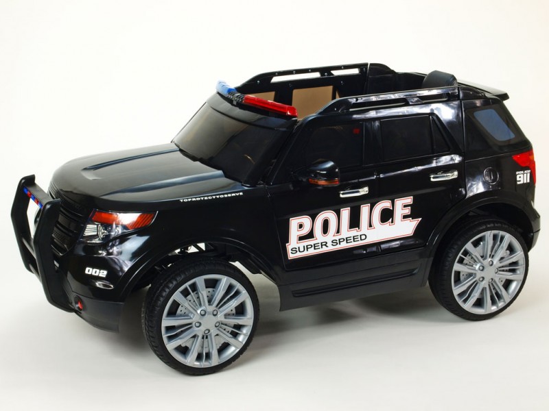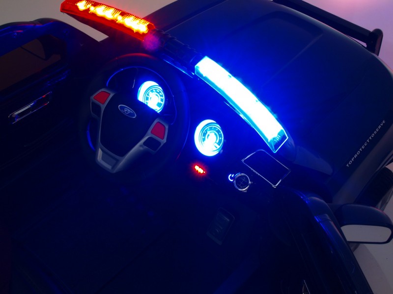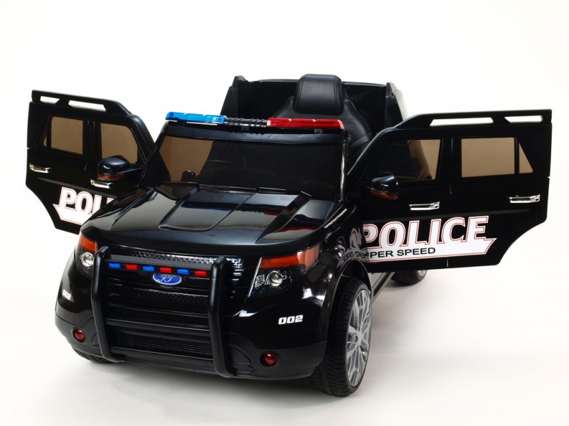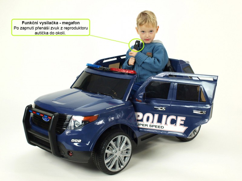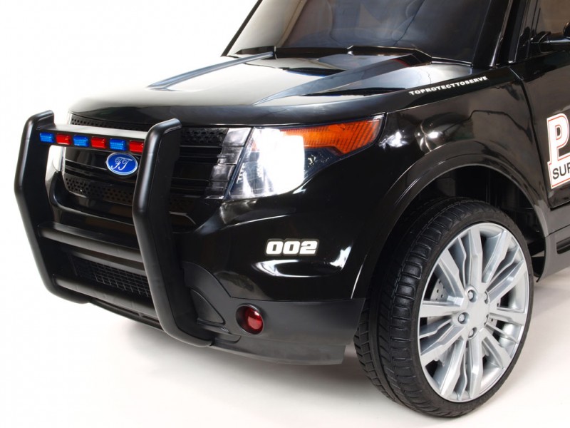 Džíp je vybavený otvárateľnými dverami, osvetlenou palubnou doskou, osvetlenými prístrojmi, svietiacimi prednými a zadnými svetlami, hmlovkami, smerovkami a osvetlením v policajných farbách nad oknom na prednom ráme. Ako pri žiadnom pravom policajnom aute nechýba ani funkčný megafón pre hlasné rozprávanie , ktorý prenáša zvuk do okolia z reproduktora auta. Vo výbave je ďalej široký rad zvukových efektov: zvuky jazdy, štartovanie, realistické zvuky motora, klaksón a zabudované pesničky. Na palubnej doske sa okrem iného nachádza aj skutočné FM rádio a vstupy pre MP3, USB a SD (pamäťovú) kartu. Deťom tak počas jazdy môžete pustiť ich vlastnú obľúbenú muziku, alebo naladiť rôzne rádiové stanice. Samozrejmosťou je aj možnosť regulácie hlasitosti všetkých zvukových efektov či ich kompletné vypnutie. Na displeji rádia sa po zapnutí auta zobrazí voltmeter s aktuálnym stavom nabitia batérie. Pre čo najpohodlnejšiu jazdu sú obe nápravy odpružené a kolesá sú gumové - vyrobené z EVA materiálu .