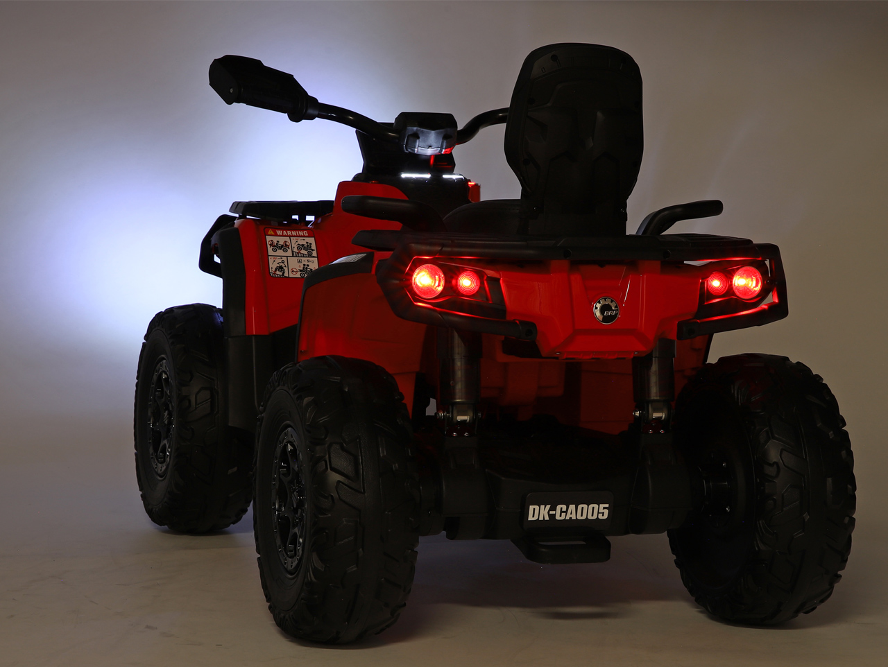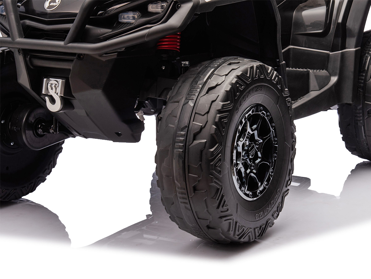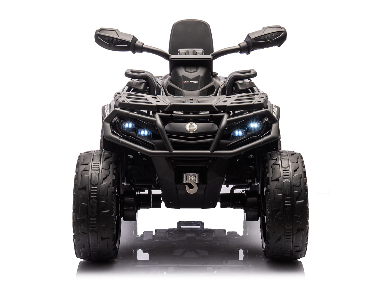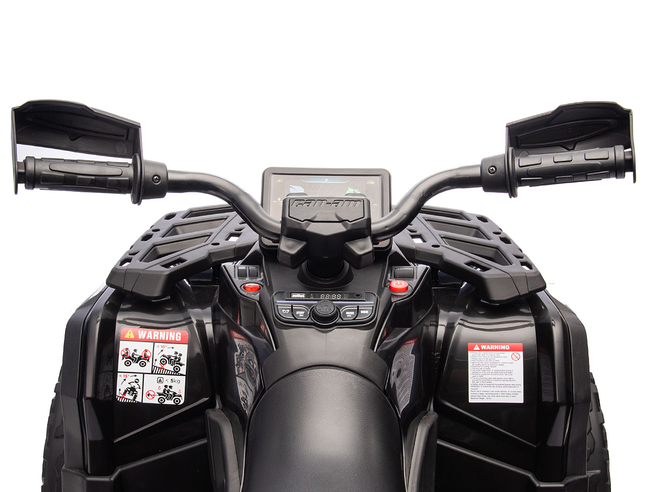 4 motory 24V/200W, prenosný box s batériou 24V/7Ah, pohon všetkých kolies, nosnosť 50 kg, vhodná aj pre jazdu dvoch detí, 2 rýchlosti, plynulý rozjazd, EVA kolesá na ložiskách, polstrovaná sedačka z eko kože, Bluetooth, USB, AUX, FM rádio, predné a zadné LED svetlá, odpruženie zadnej nápravy, ukazovateľ batérie (voltmeter), zvukové efekty, klaksón, licencia Can-Am Celý popis