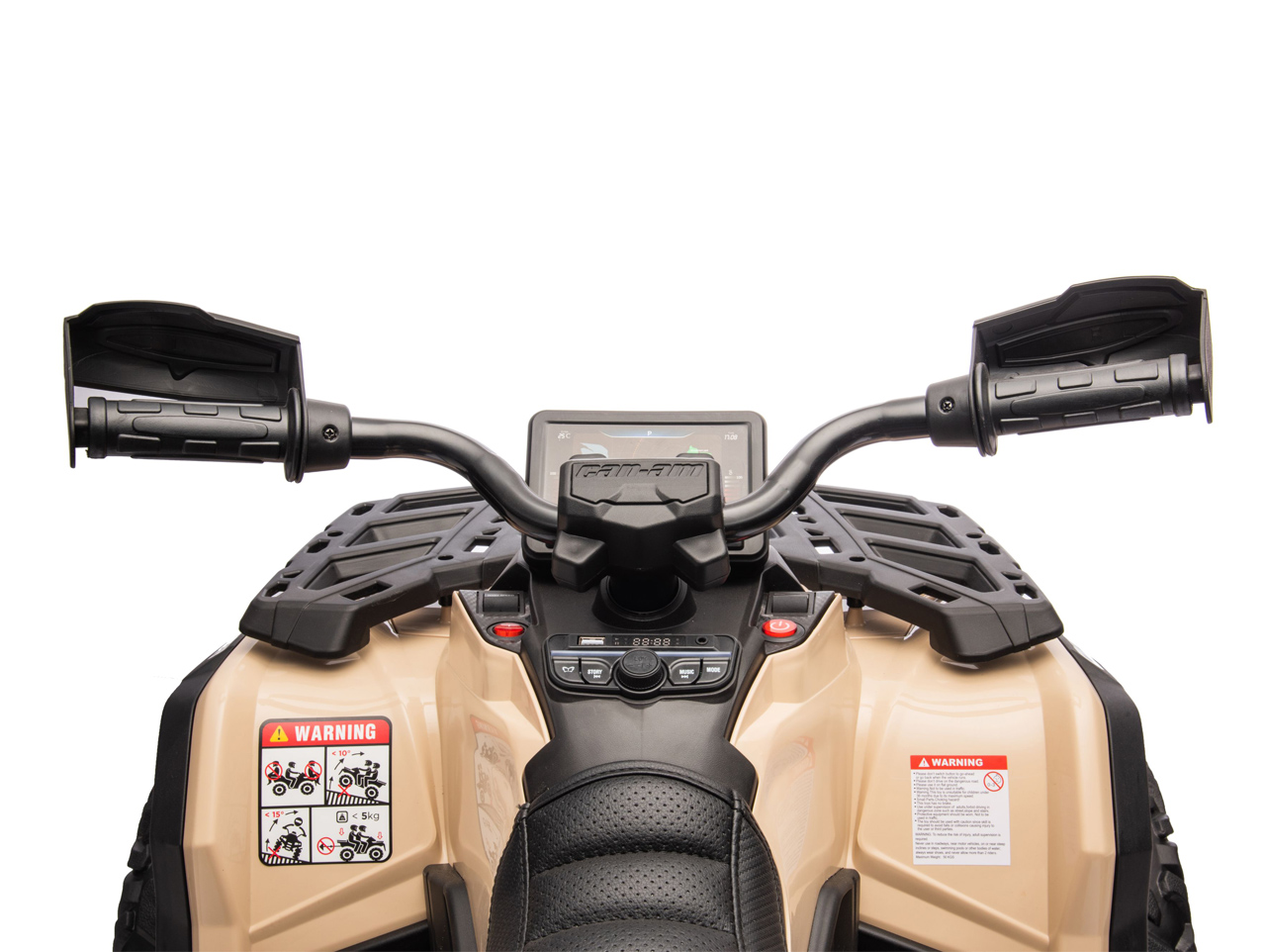 Elektrická štvorkolka Can-Am Outlander diaľkové ovládanie nemá. Je predsa len určená pre deti staršie ako 3 roky, ktoré už zvládajú vozítko bez problému ovládať samy.
