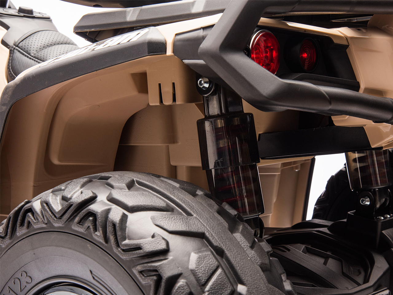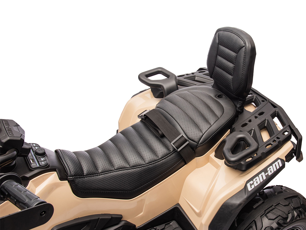 Elektrická štvorkolka Can-Am Outlander je vybavená veľmi pohodlnou polstrovanou sedačkou z eko kože. Váš malý rally pretekár síce nie je z cukru, ale deti sú na diskomfort citlivejšie ako dospelí. Čím pohodlnejšie sa mu bude sedieť, tým menej sťažností si vypočujete. Menšie deti sa budú aj pri jazde po hrboľoch cítiť istejšie vďaka bezpečnostnému pásu, takže sa nemusíte ľakať, keď to s nimi bude trochu hádzať. Ono to ale veľmi hádzať nebude, pretože odpružená zadná náprava tejto elektrickej štvorkolky je skutočný top. Nerovnosti zdolá bez žmurknutia svetlometom.