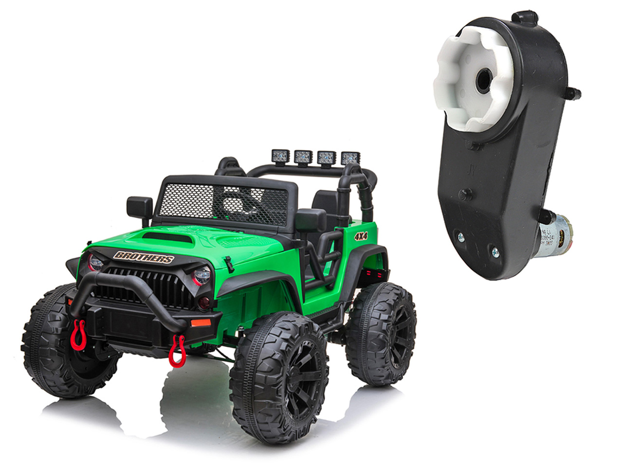 Náhradný elektrický motor s prevodovkou je určený pre detské elektrické autíčko džíp andos Brothers 24V (model číslo JC666-BR). Slúži na ovládanie volantu pomocou diaľkového ovládača. Motor s prevodovkou je možné nasadiť na os s priemerom 10 mm.