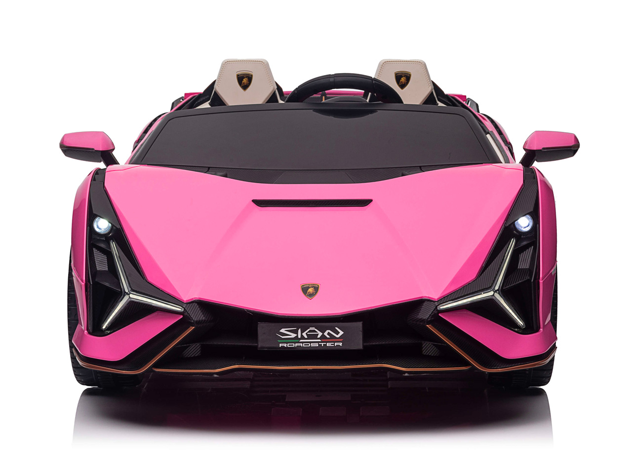 Skutočný model Lamborghini Sián stavia na majstrovstvách talianskych dizajnérov, naše elektrické autíčko svoj veľký vzor kopíruje. Efektné biele polstrované sedačky z eko kože zdobia logo Lamborghini, rovnako ako ergonomický volant. Rodičia malých vodičov môžu byť pokojní, pretože sedačka je vybavená bezpečnostným pásom a autíčko splnilo všetky relevantné bezpečnostné testy EÚ.