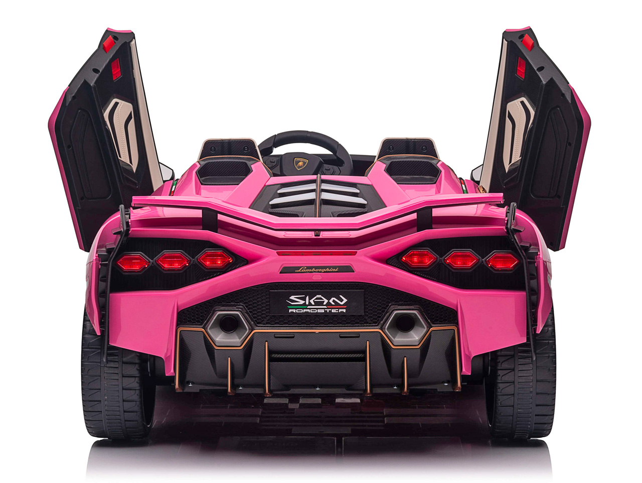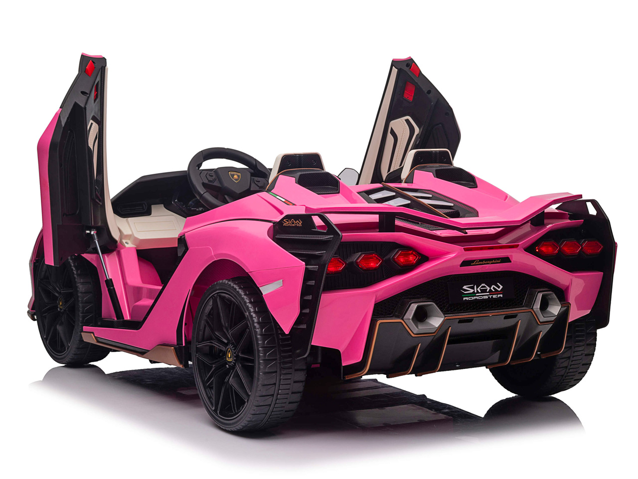 Lamborghini Sián nadväzuje na legendárny model Countach, ktorý svojim hranatým dizajnom a šesťuholníkovými zadnými svetlami zmenil svet luxusných automobilov. Tiež elektrické vozítko Lamborghini Sián zmení to, čo si pod elektrickým autíčkom pre deti predstavíte. Každým atómom hovorí, že je pravé Lamborghini, od dizajnového tvaru karosérie, cez všadeprítomné logo a ikonické zadné aj predné svetlá, až po dvere, ktoré sa otvárajú kam inam, než hore.