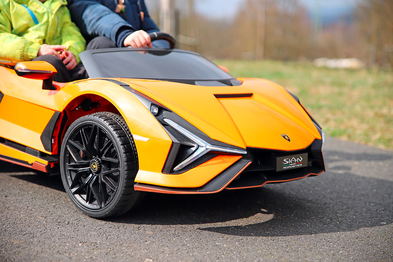 Skutočný Lamborghini Sián je zatiaľ najvýkonnejším automobilom tejto značky. Jeho zmenšená verzia nezostáva svojej predlohe nič dlžná. So štyrmi silnými motormi (4x 24 V / 200 W) patrí elektrické autíčko Lamborghini Sián k najvýkonnejším na trhu. Na rovnom povrchu vyvinie rýchlosť 5 km/ha poradí si aj s mierne zvlneným terénom. Nízky podvozok ho predurčuje skôr na rovné cesty a chodníky, avšak ani trávnatý povrch pre neho nebude problém.