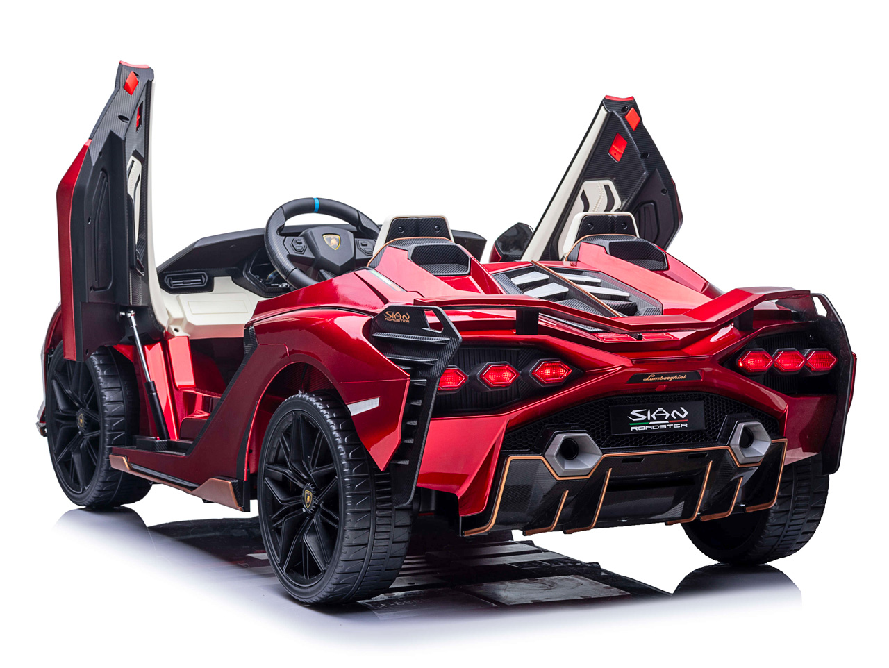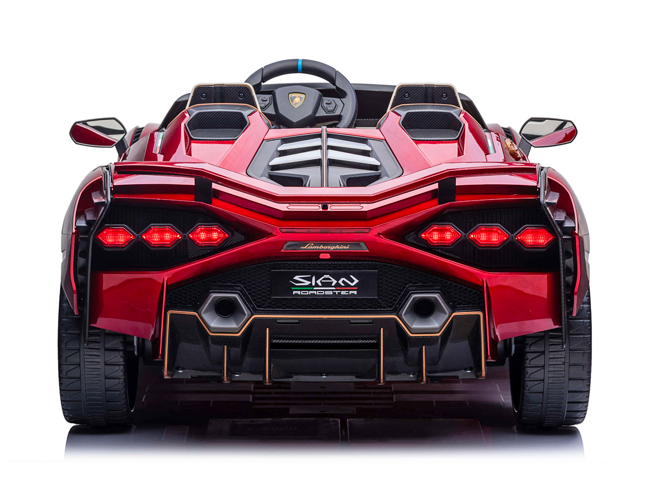 Lamborghini Sián nadväzuje na legendárny model Countach, ktorý svojim hranatým dizajnom a šesťuholníkovými zadnými svetlami zmenil svet luxusných automobilov. Tiež elektrické vozítko Lamborghini Sián zmení to, čo si pod elektrickým autíčkom pre deti predstavíte. Každým atómom hovorí, že je pravé Lamborghini, od dizajnového tvaru karosérie, cez všadeprítomné logo a ikonické zadné aj predné svetlá, až po dvere, ktoré sa otvárajú kam inam, než hore.