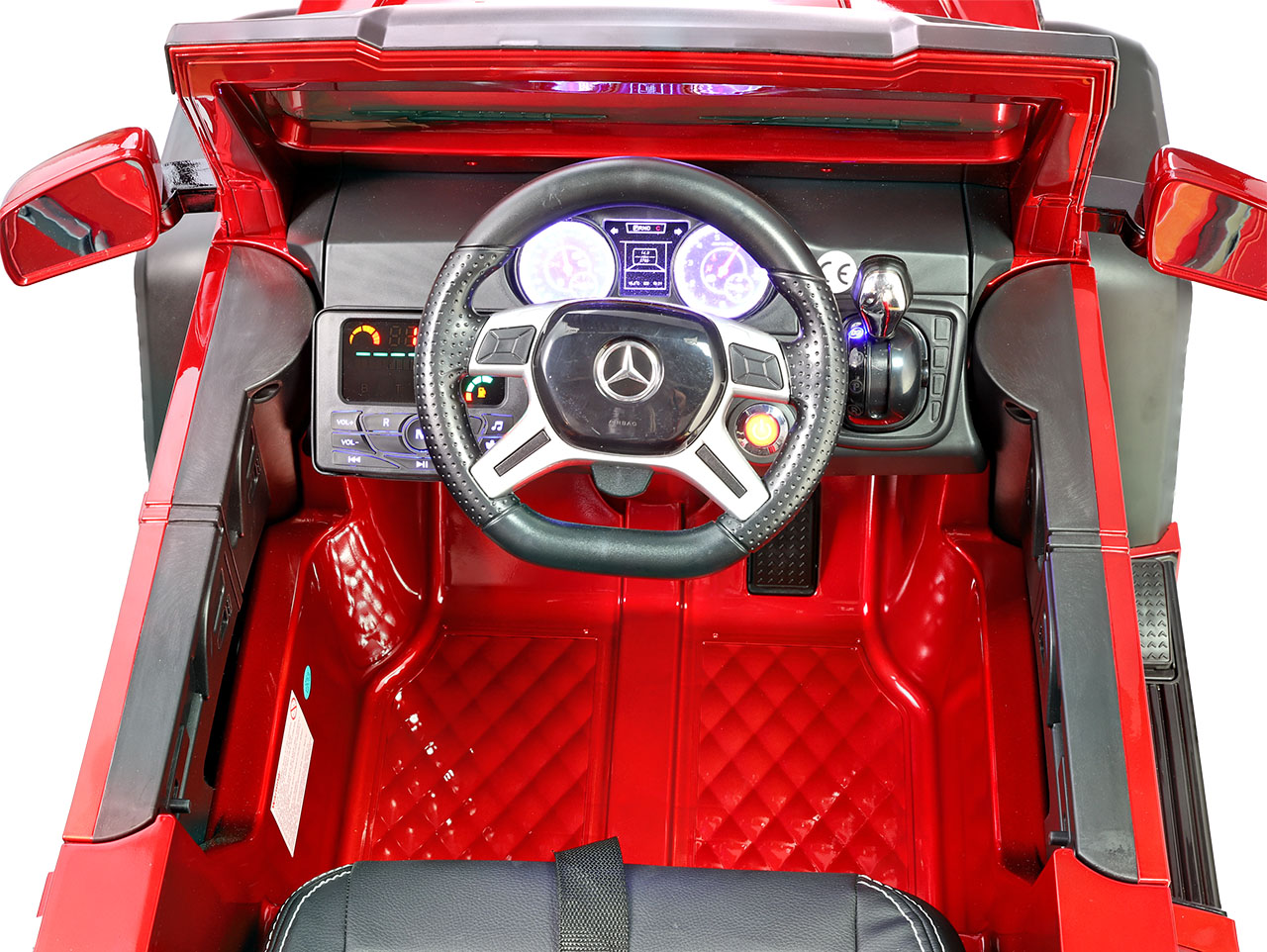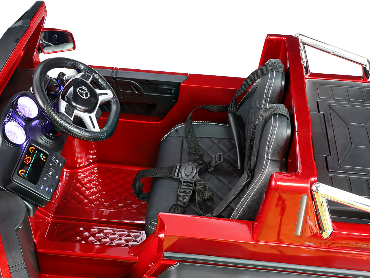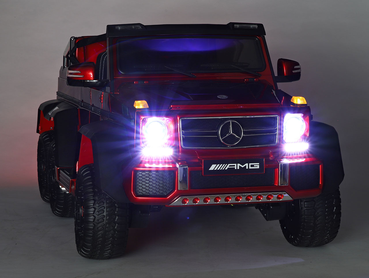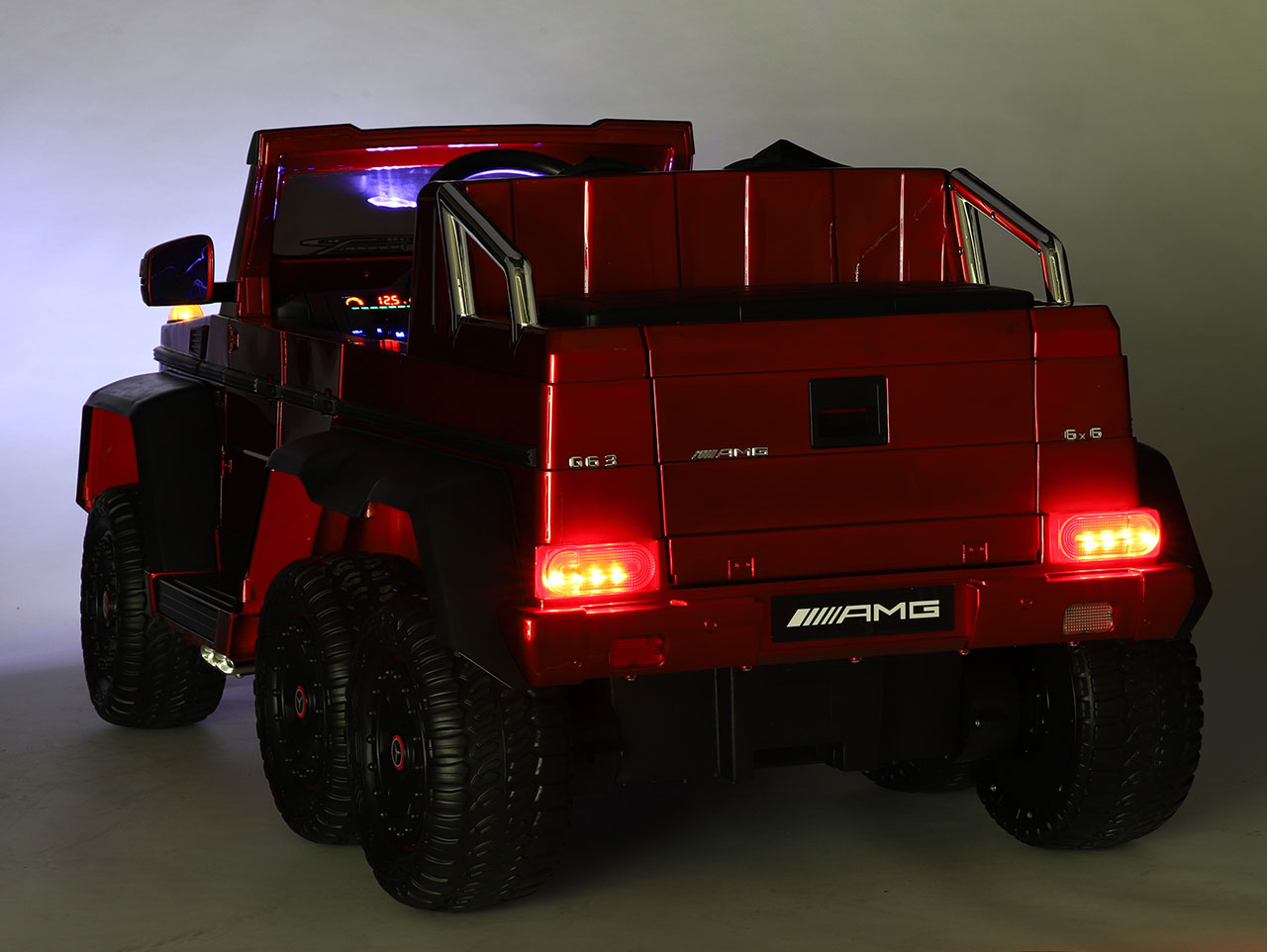 6 motorov 12V/45W, box s batériou 12V/14Ah + 12V/10Ah zadarmo, 2 rýchlosti na manuál / 3 na diaľkové ovládanie (2.4G), rýchloupínacie EVA kolesá, polstrovaná sedačka, Bluetooth, USB, SD, AUX, FM rádio, zadné dve nápravy odpružené, nosnosť 110 kg, plynulý rozjazd, LED svetlá, zvukové efekty, otvárateľné dvere, ukazovateľ stavu batérií, lakovanie, zadný úložný priestor, licencia Mercedes-Benz Celý popis