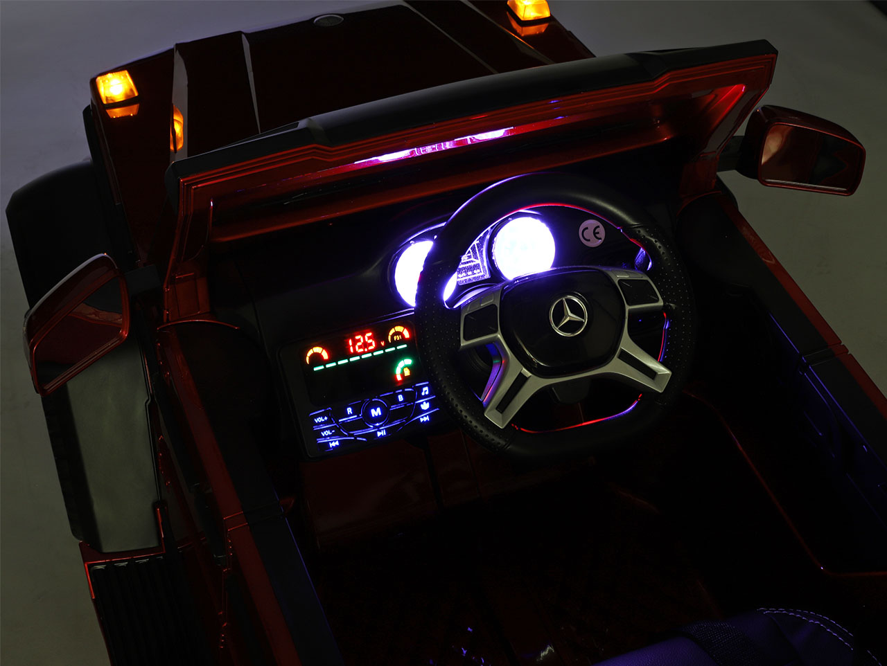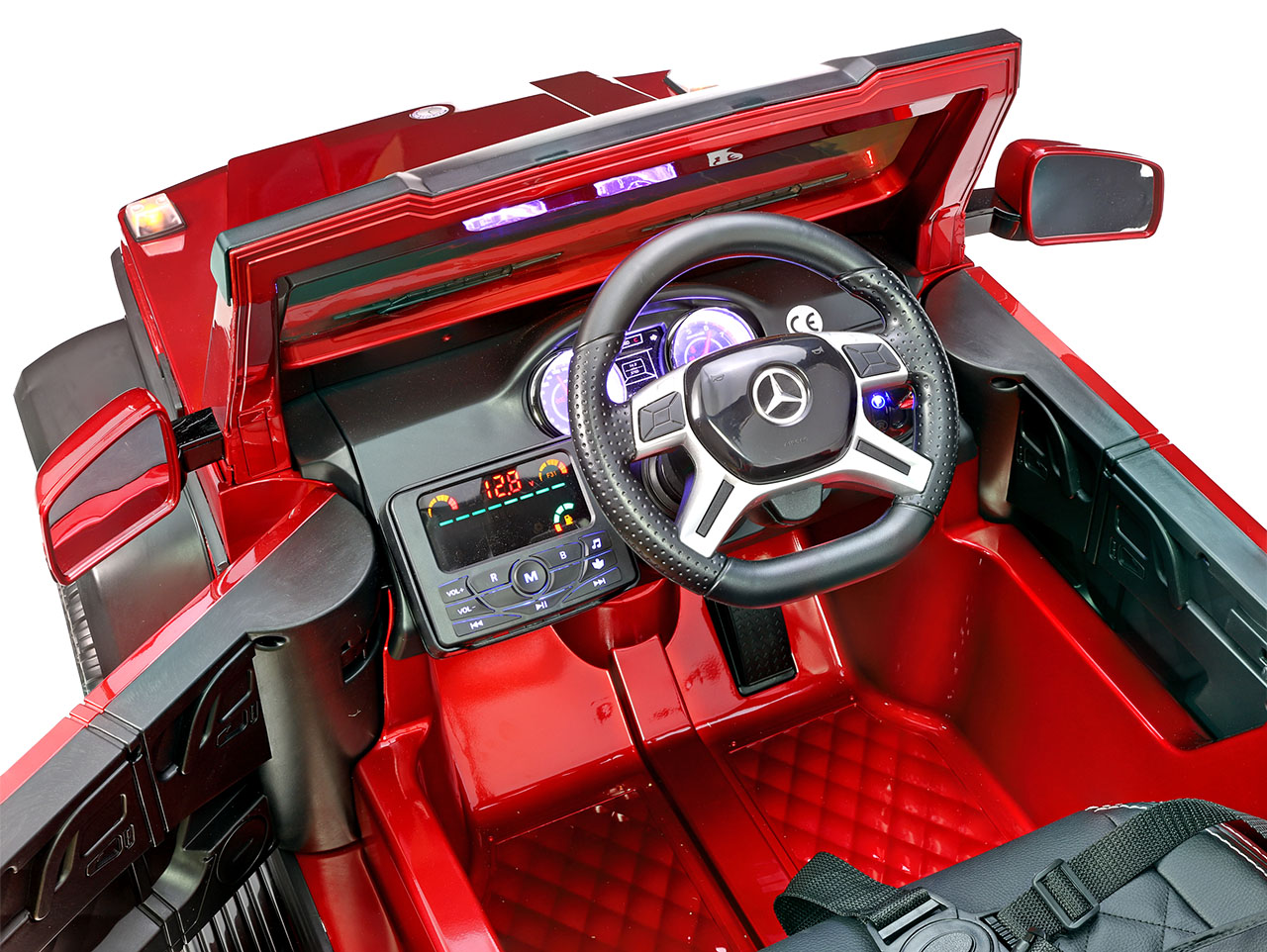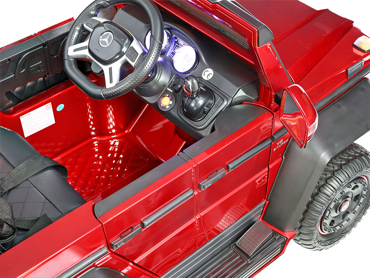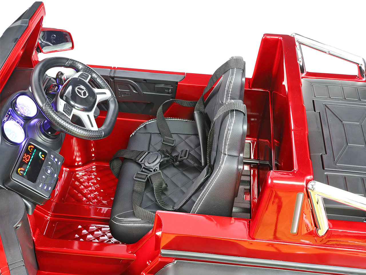 6 motorov 12V/45W, box s batériou 12V/14Ah + 12V/10Ah zadarmo, 2 rýchlosti na manuál / 3 na diaľkové ovládanie (2.4G), rýchloupínacie EVA kolesá, polstrovaná sedačka, Bluetooth, USB, SD, AUX, FM rádio, zadné dve nápravy odpružené, nosnosť 110 kg, plynulý rozjazd, LED svetlá, zvukové efekty, otvárateľné dvere, ukazovateľ stavu batérií, lakovanie, zadný úložný priestor, licencia Mercedes-Benz Celý popis
