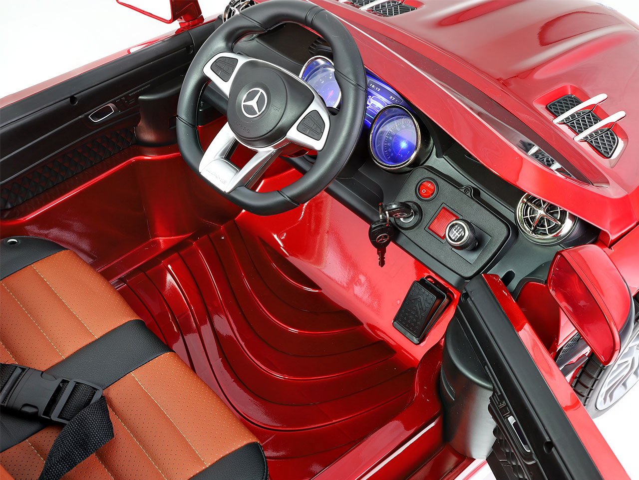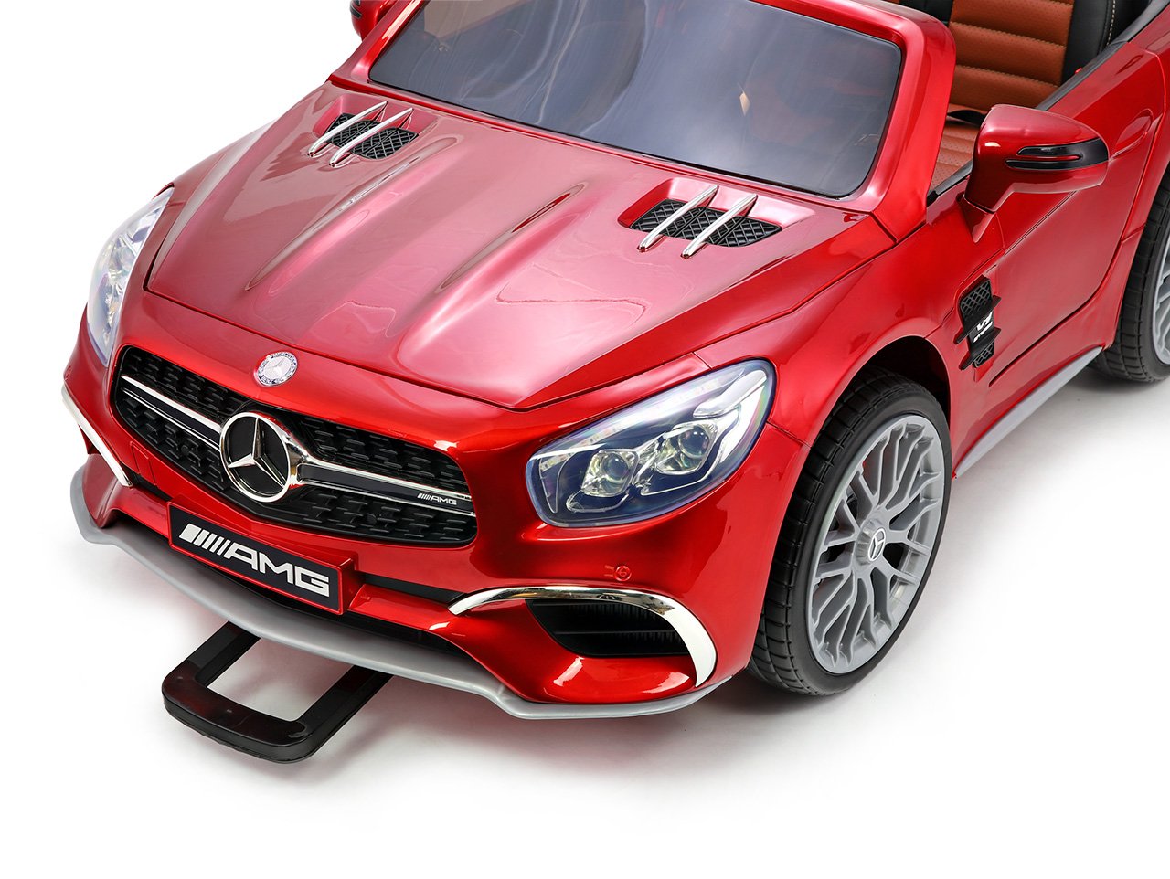 V Mercedese sa týmto heslom riadi. Vyrába najkrajšie modely, ktoré dajú vodičovi zabudnúť na šeď bežného dňa. Detský svet síce na šedú rutinu väčšinou netrpí, ale prečo ho neurobiť ešte farebnejšie. Elektrické autíčko Mercedes rozžiari zvedavé detské oči aj unavené zraky rodičov. Predná maska s výraznými uhlami , ktorú toto elektrické autíčko prevzalo zo skutočného Mercedesu AMG, je doplnená výrazným logom, na užívanie ktorého toto vozidlo oprávňuje licencie . Skosené predné sklo kabrioletu dopĺňajú efektné predné svetlomety a zahanbiť sa nenechá Mercedes-Benz AMG ani pri pohľade zozadu.