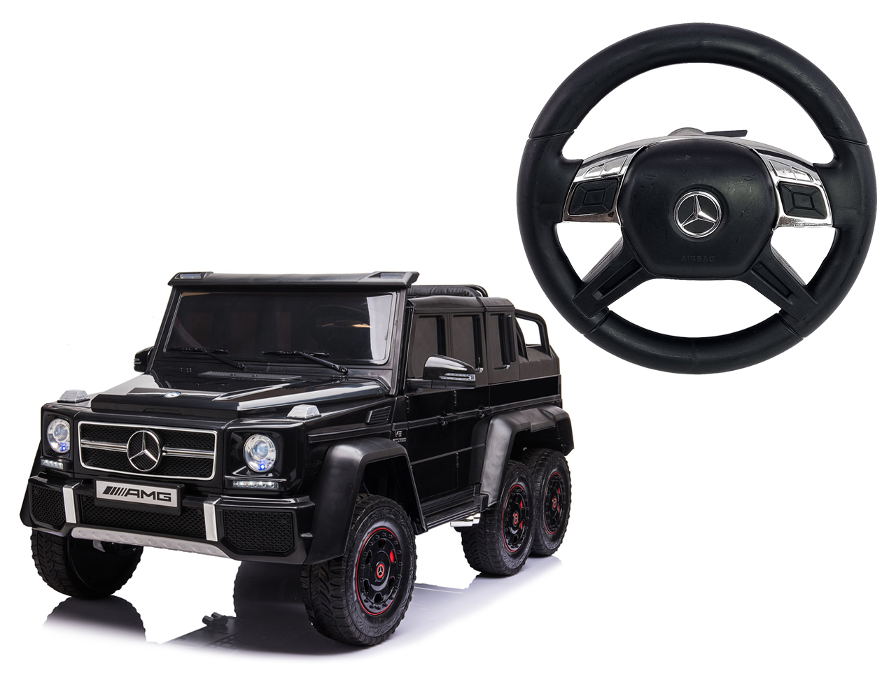 Náhradný volant je určený pre detské elektrické autíčko Mercedes-Benz G63 AMG 6x6 (model číslo ABL1801-6x6)