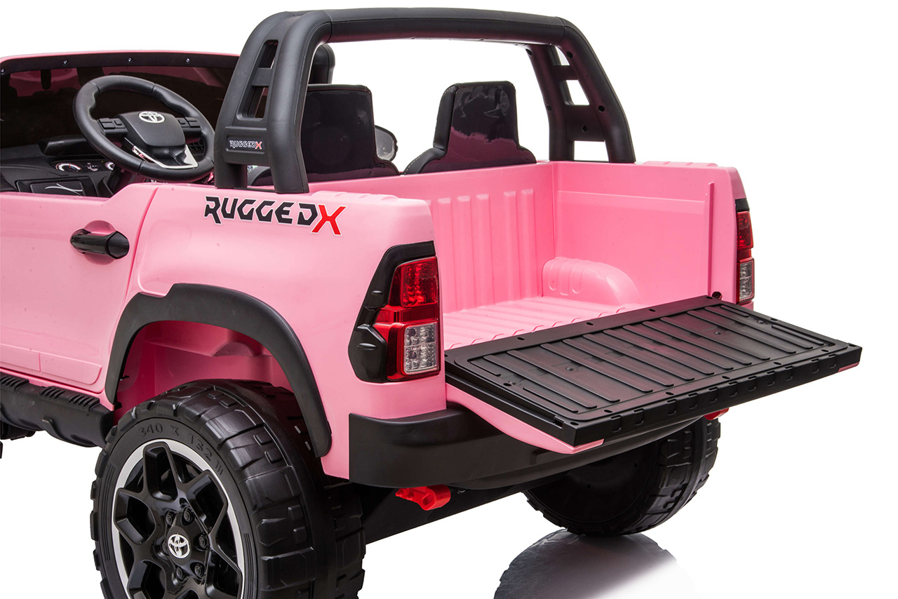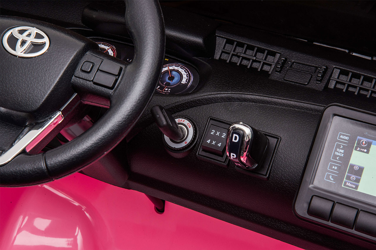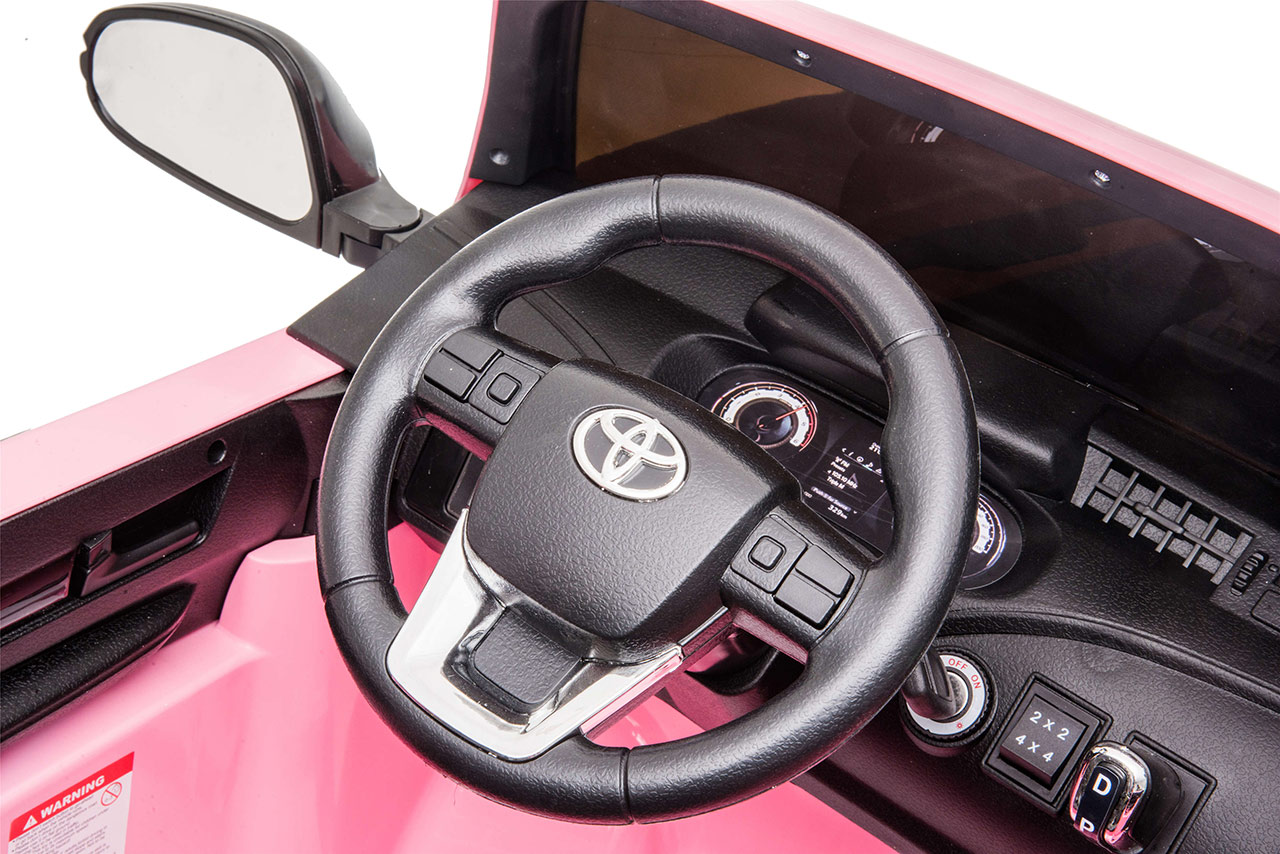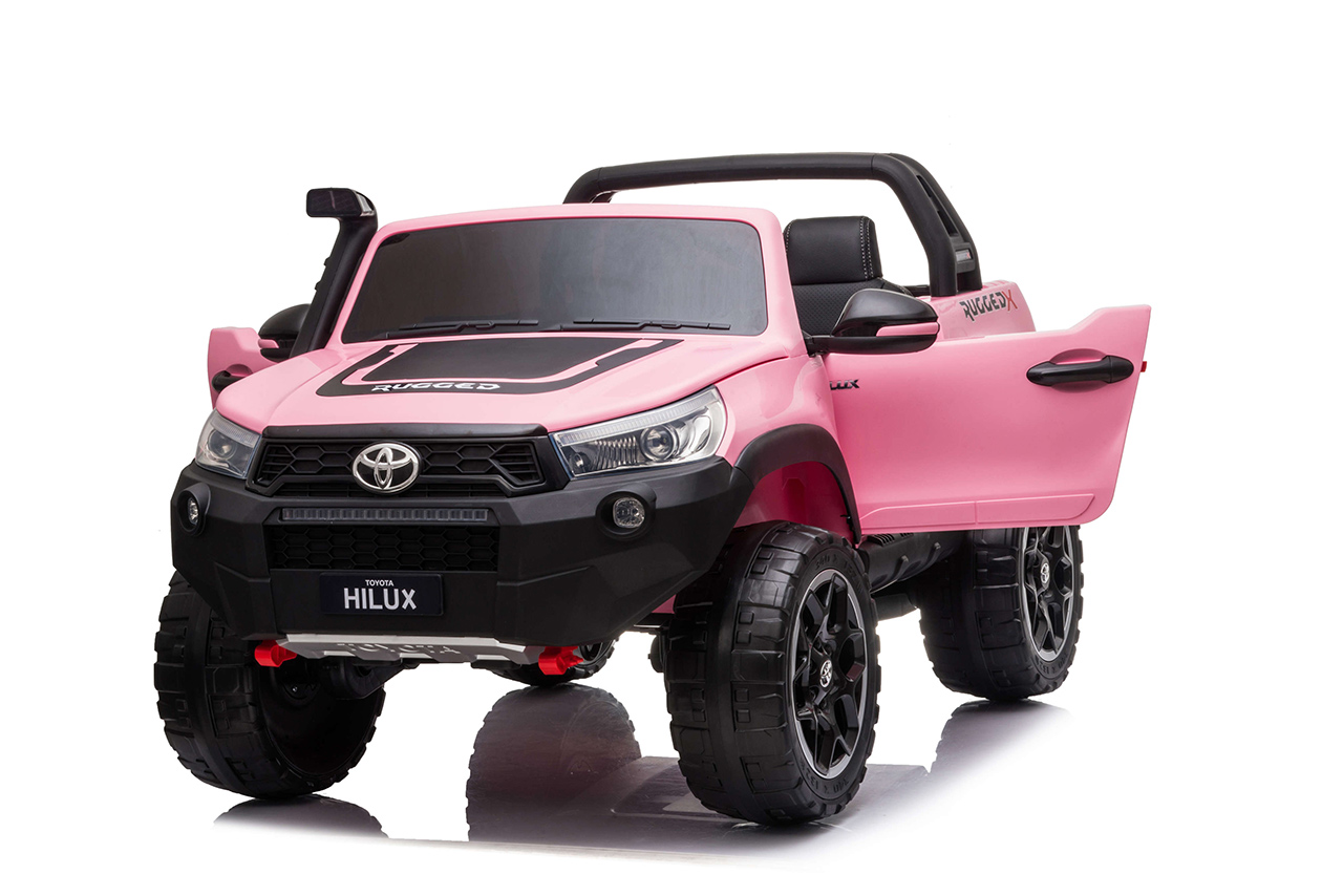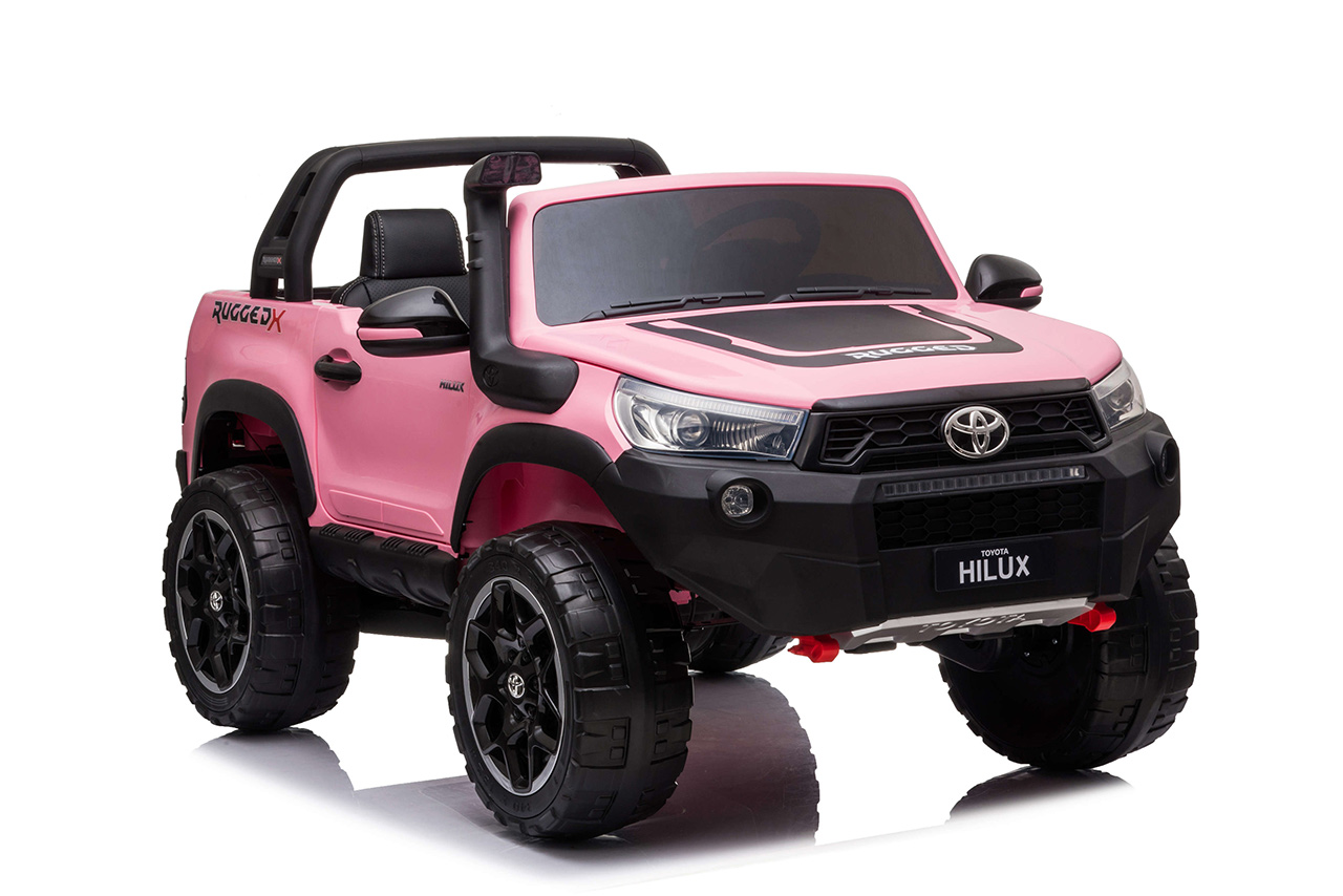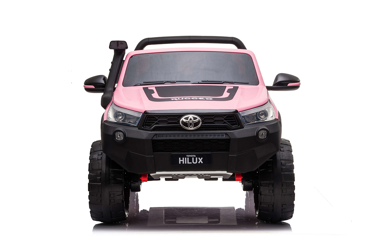 Pozeráte sa na dokonalú zmenšeninu legendárneho pick-upu z garáže automobilky Toyota. Svojím smelým vzhľadom a extra výkonom vystupuje nový Hilux zo šedej davu. Jedná se o prémiovú verziu Toyoty Hilux, ktorá je vybavená štyrmi motormi 24V/200W a rovno dvoma batériami 24V/7Ah. Vnútri autíčka sú umiestnené dve pohodlné, ručne prešívané sedačky. Robustná karoséria si poradí so zaťažením až 50 kilogramov. Toyota Hilux je ako stvorená pre vyčíňanie vo dvojici.