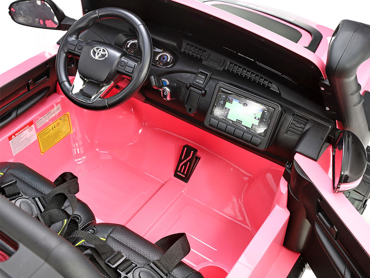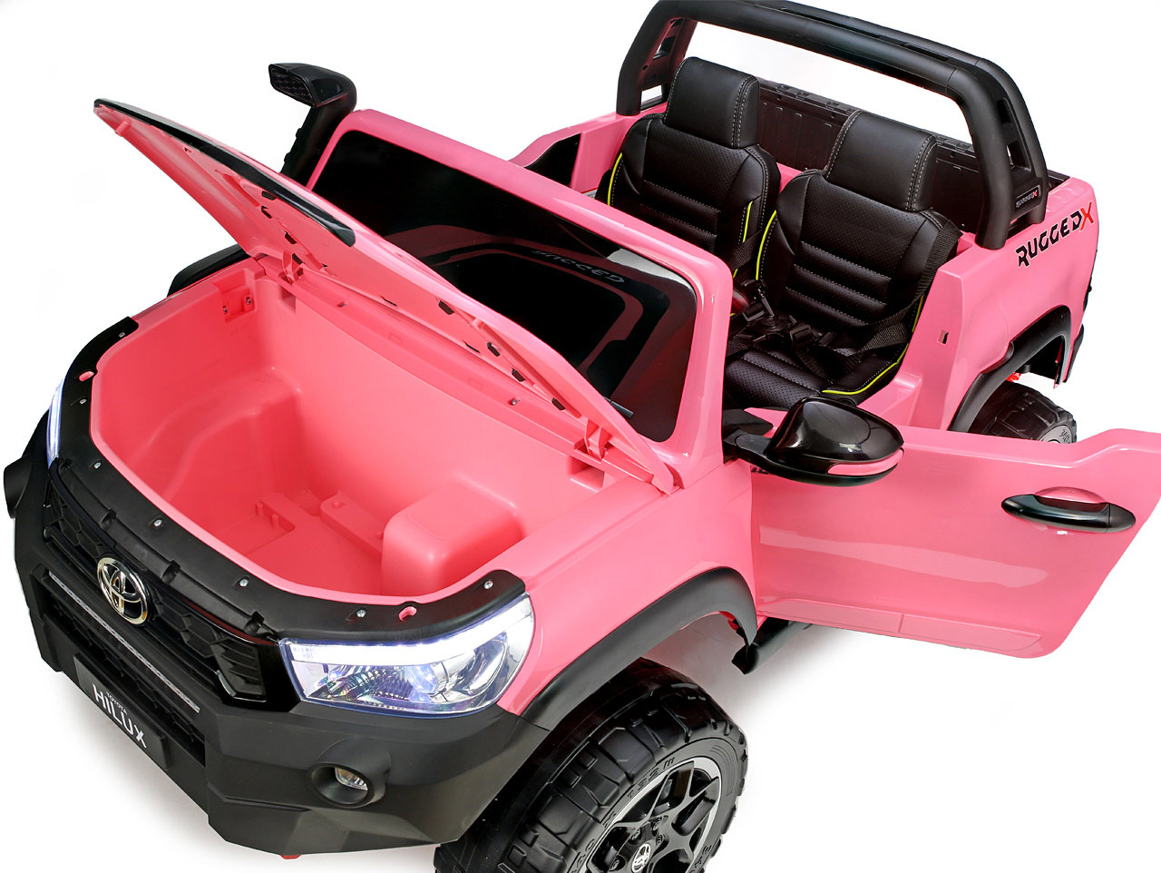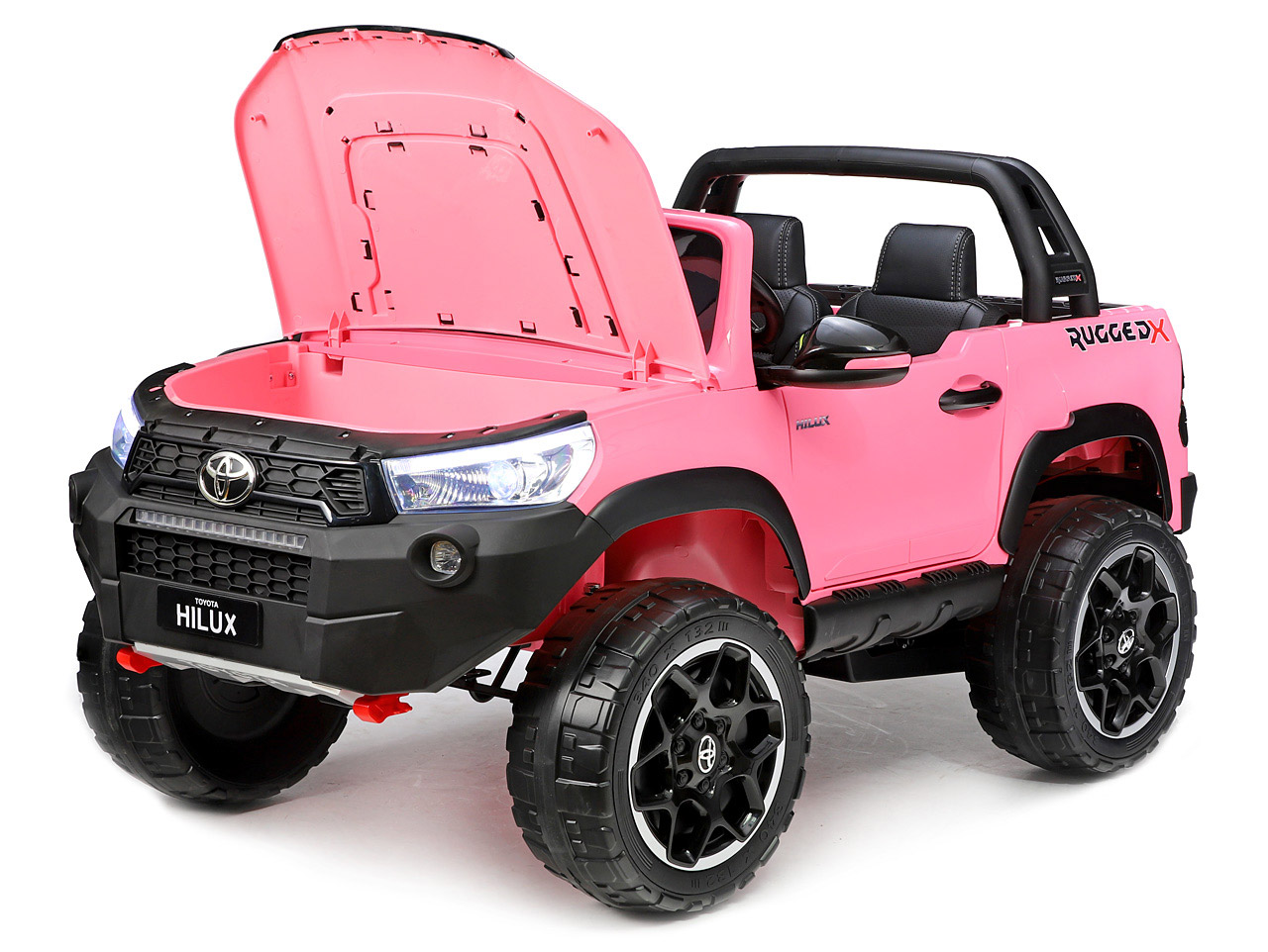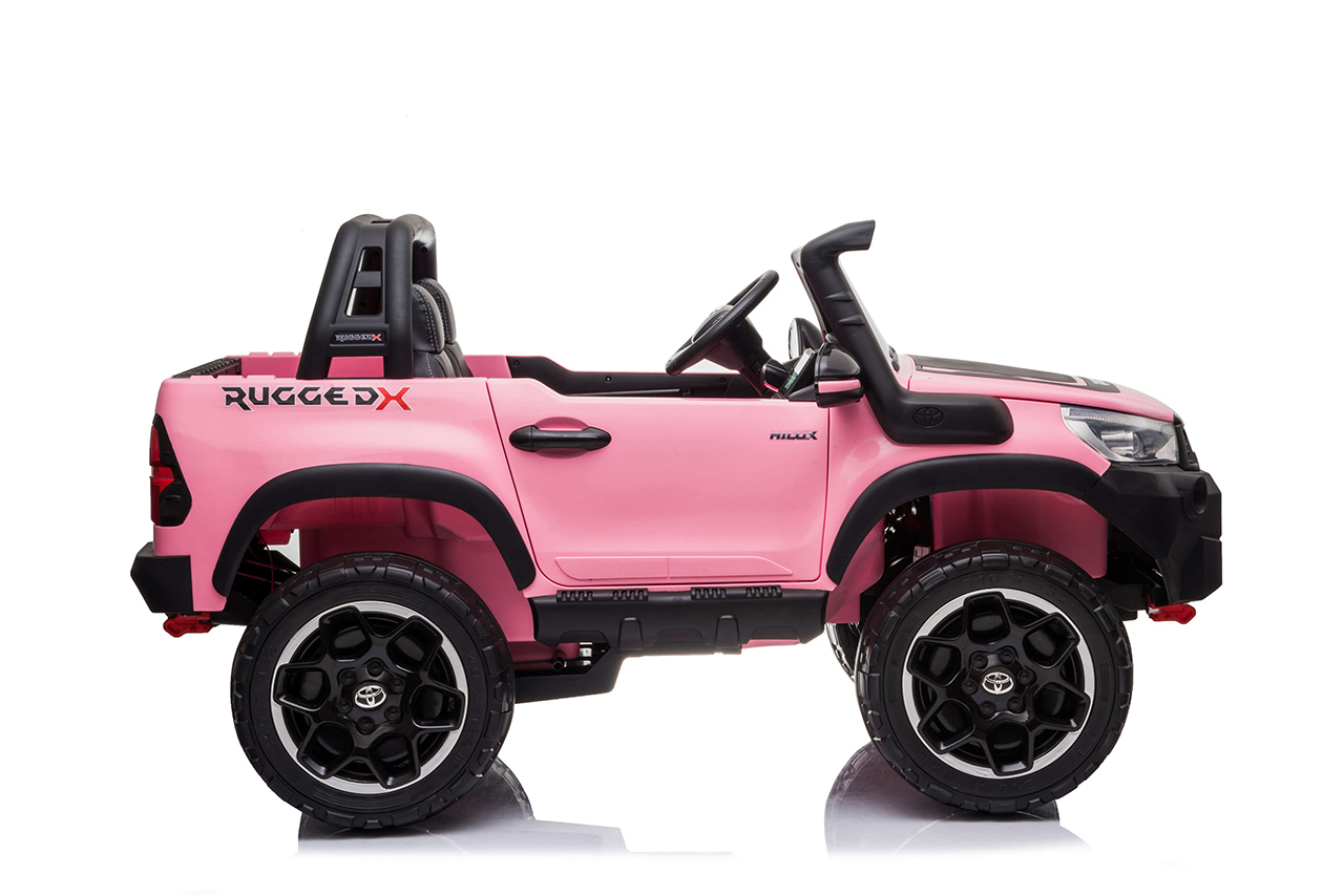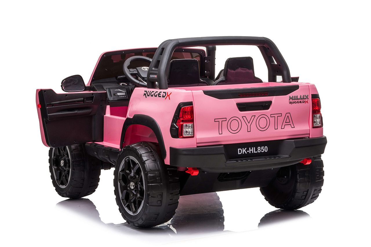 Pozeráte sa na dokonalú zmenšeninu legendárneho pick-upu z garáže automobilky Toyota. Svojím smelým vzhľadom a extra výkonom vystupuje nový Hilux zo šedej davu. Jedná se o prémiovú verziu Toyoty Hilux, ktorá je vybavená štyrmi motormi 24V/200W a rovno dvoma batériami 24V/7Ah. Vnútri autíčka sú umiestnené dve pohodlné, ručne prešívané sedačky. Robustná karoséria si poradí so zaťažením až 50 kilogramov. Toyota Hilux je ako stvorená pre vyčíňanie vo dvojici.