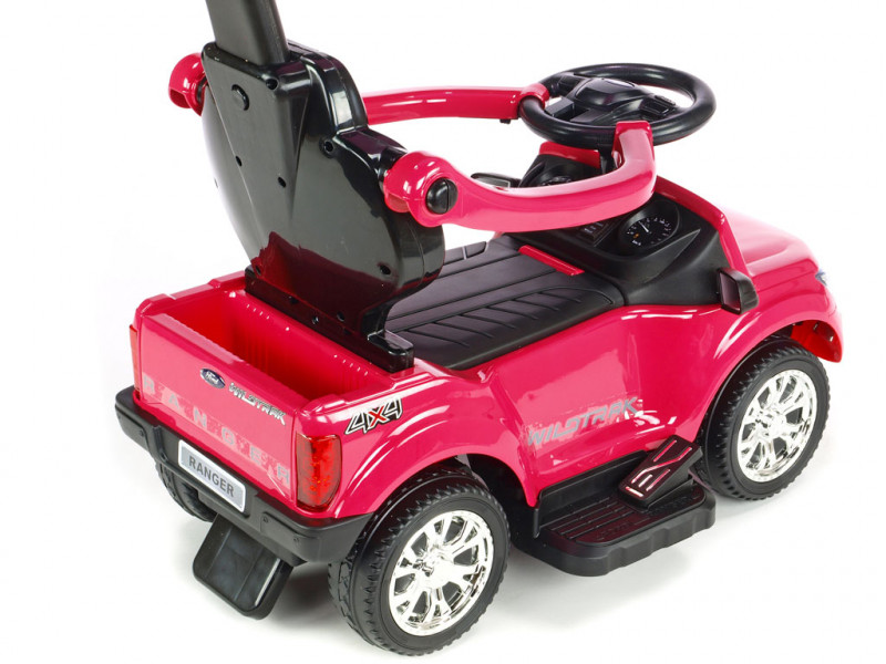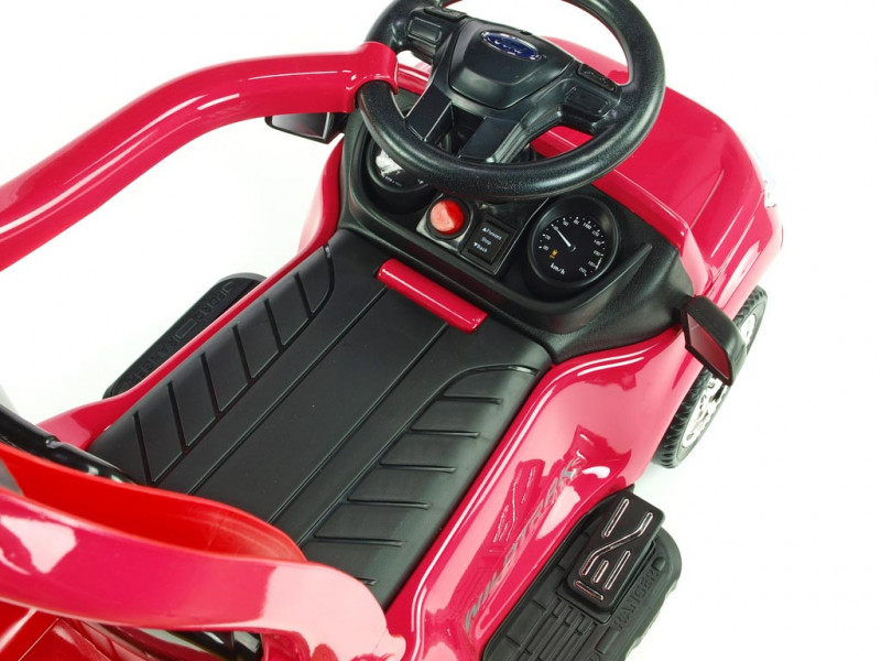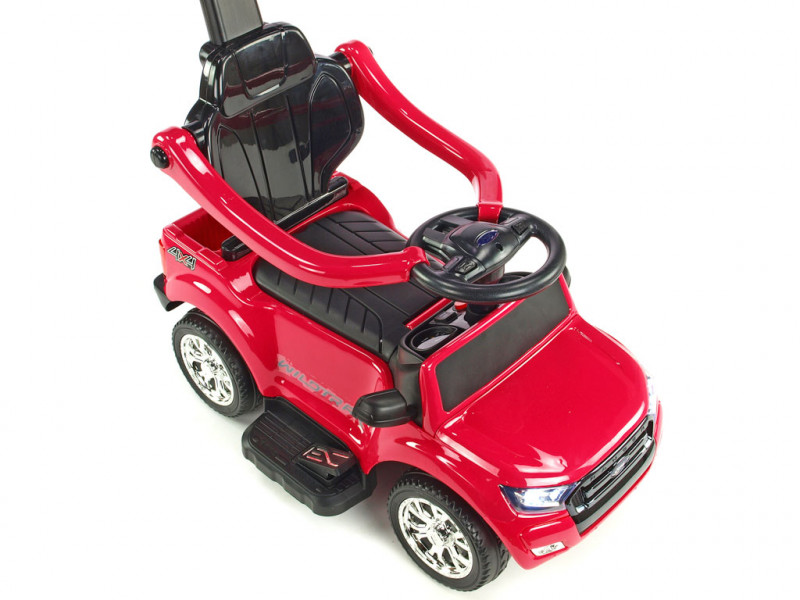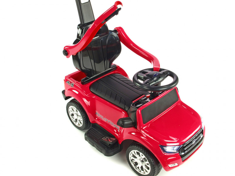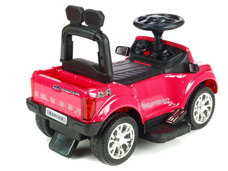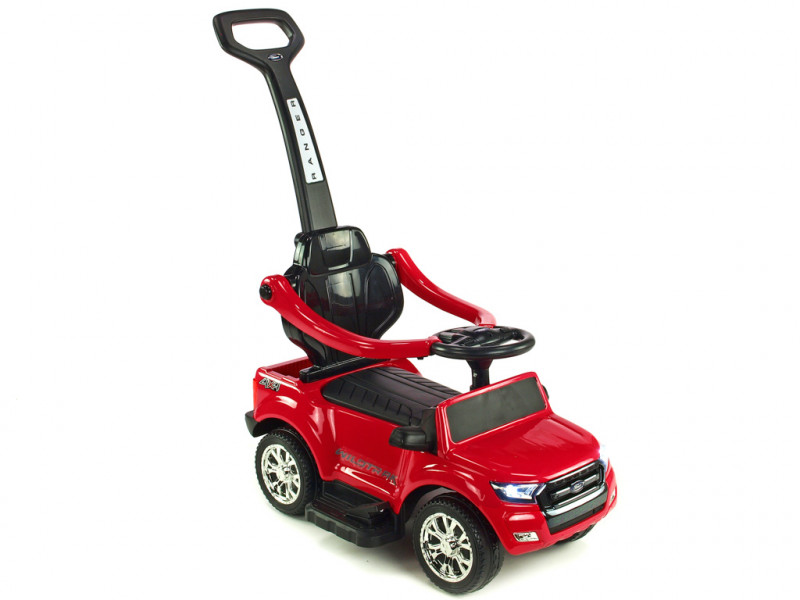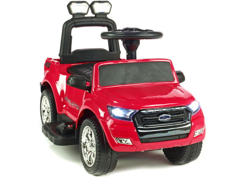 Jedinečné autíčko značky Ford s presným a detailným spracovaním originálneho modelu, ktoré poteší tých najmenších vodičov. Súčasťou balenia vozítka sú dve operadlá, medzi ktorými si môžete vybrať podľa potreby (viď fotogaléria). Ďalej sa tu ponúka možnosť jednoduchého nasadenia bezpečnostných madiel, vodiacej tyče a sklopnej striešky, ktorá môže poslúžiť ako príjemné tienidlo. Jazda vpred aj vzad na dva možné spôsoby - prvým je klasické manuálne riadenie cez nožný pedál, druhý je tlačenie vodiacou tyčou. Vodiacu tyč využijú najmä rodičia menej skúsených vodičov, ktorí si však techniku manuálneho ovládania čoskoro sami osvoja. Vozítko je opatrené jedným elektrickým motorom (24W / 6V) a náhonom jedného zadného kolesa. Ford Ranger je vybavený svietiacimi prednými LED svetlami a zvukovými efektmi ako klaksón, muzika a ďalšie. Pokiaľ by ste si priali deťom jazdu ešte o niečo spestriť, rozhodne využijete zabudované vstupy pre TF (pamäťovú) kartu a MP3 prehrávač. Stačí teda vložiť pamäťovú kartu alebo k autíčku pripojiť Vaše MP3 zariadenia a auto začne hudbu prehrávať v reproduktoroch. Pod sedačkou av zadnej časti auta sa nachádza úložný priestor vhodný pre drobnosti ako kľúče, desiata a pod. Vďaka kvalitnej konštrukcii a pevným ochranným držadlám okolo sedačky si aj tí najmladší užijú veľa bezpečnej zábavy. Autíčko váži iba 7 kg, takže je navyše ľahko prenosné a prepraviteľné. Určené pre deti od 2 rokov.