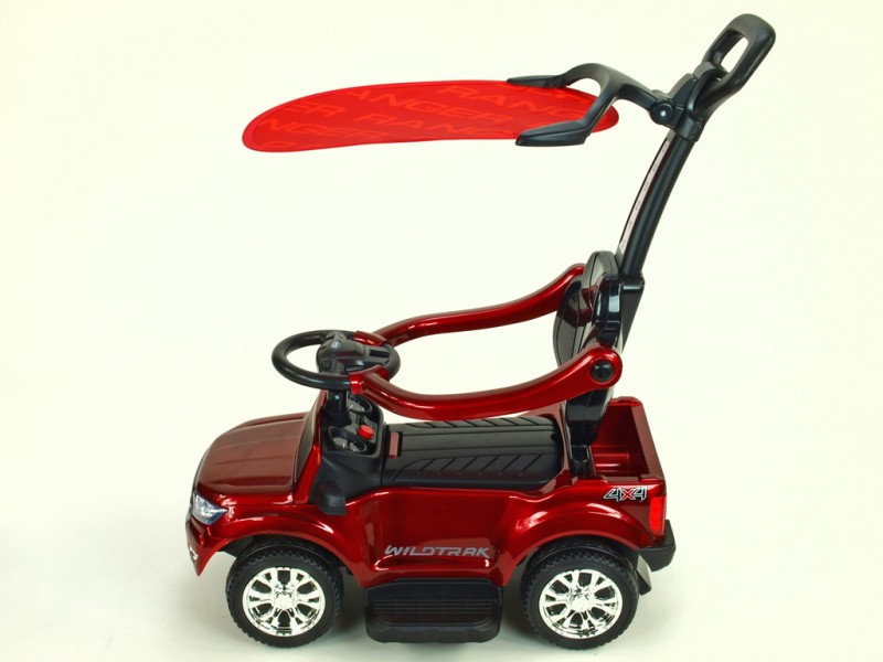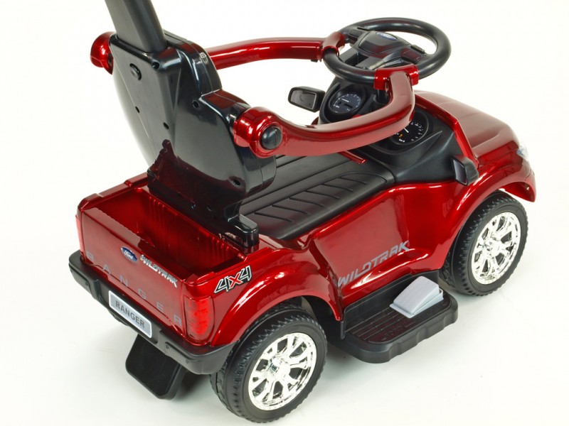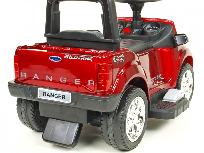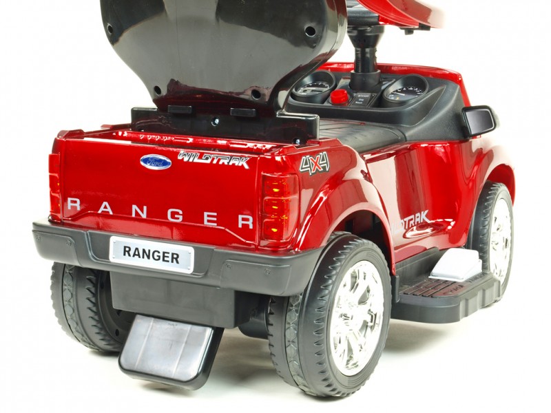 Jedinečné autíčko značky Ford s presným a detailným spracovaním originálneho modelu, ktoré poteší tých najmenších vodičov. Súčasťou balenia vozítka sú dve operadlá, medzi ktorými si môžete vybrať podľa potreby (viď fotogaléria). Ďalej sa tu ponúka možnosť jednoduchého nasadenia bezpečnostných madiel, vodiacej tyče a sklopnej striešky, ktorá môže poslúžiť ako príjemné tienidlo. Jazda vpred aj vzad na dva možné spôsoby - prvým je klasické manuálne riadenie cez nožný pedál, druhý je tlačenie vodiacou tyčou. Vodiacu tyč využijú najmä rodičia menej skúsených vodičov, ktorí si však techniku manuálneho ovládania čoskoro sami osvoja. Vozítko je opatrené jedným elektrickým motorom (24W / 6V) a náhonom jedného zadného kolesa. Ford Ranger je vybavený svietiacimi prednými LED svetlami a zvukovými efektmi ako klaksón, muzika a ďalšie. Pokiaľ by ste si priali deťom jazdu ešte o niečo spestriť, rozhodne využijete zabudované vstupy pre TF (pamäťovú) kartu a MP3 prehrávač. Stačí teda vložiť pamäťovú kartu alebo k autíčku pripojiť Vaše MP3 zariadenia a auto začne hudbu prehrávať v reproduktoroch. Pod sedačkou av zadnej časti auta sa nachádza úložný priestor vhodný pre drobnosti ako kľúče, desiata a pod. Vďaka kvalitnej konštrukcii a pevným ochranným držadlám okolo sedačky si aj tí najmladší užijú veľa bezpečnej zábavy. Autíčko váži iba 7 kg, takže je navyše ľahko prenosné a prepraviteľné. Určené pre deti od 2 rokov.