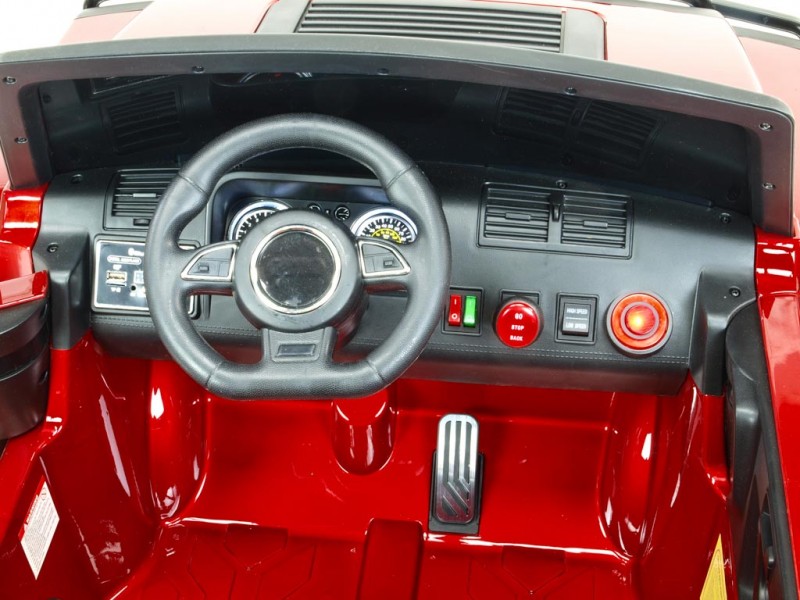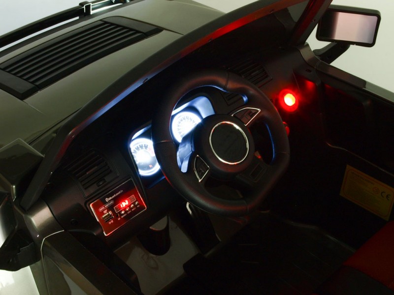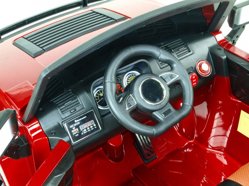 Deti si rozhodne zamilujú bohatú, nadštandardnú výbavu, ktorá zahŕňa rad senzačných svetelných a zvukových efektov. Vo výbave nájdete predné hlavné LED svetlá, zadné svetlá, denné svietenie, hmlovky, smerovky, dva osvetlené palubné prístroje, ukazovateľ stavu nabitia batérie a rampu so štyrmi reflektormi. .Osvetlenie celého vozidla sa ovláda pomocou dvoch prepínačov na palubnej doske. objavia zvuky motora, štartovanie, klaksón či zabudovanú muziku. ale nie je všetko - auto je možné tiež prepojiť s vašim mobilným telefónom cez bluetooth. mobilu spustiť vybranú muziku, načo tá začne znieť v reproduktoroch vozítka. Hlasitosť všetkých zvukov je možné regulovať ovládaním hlasitosti na palubke.