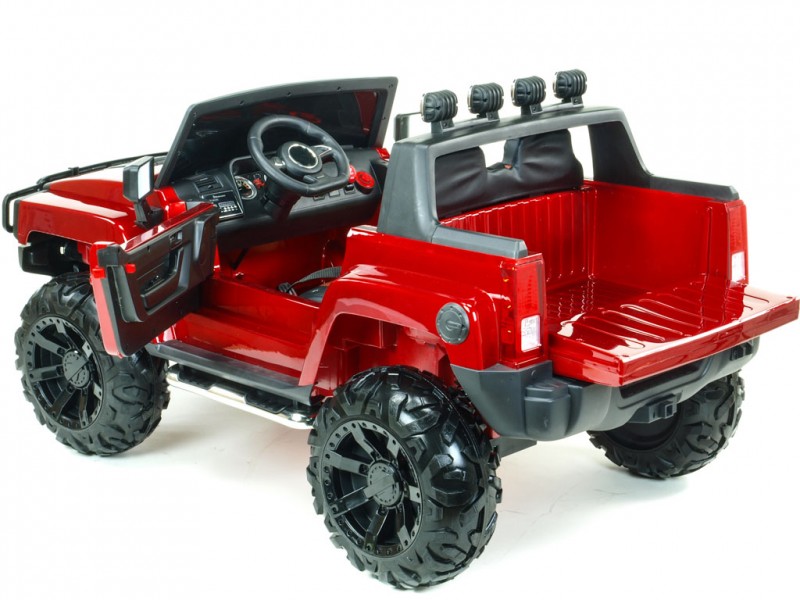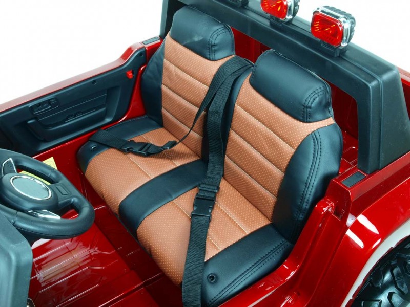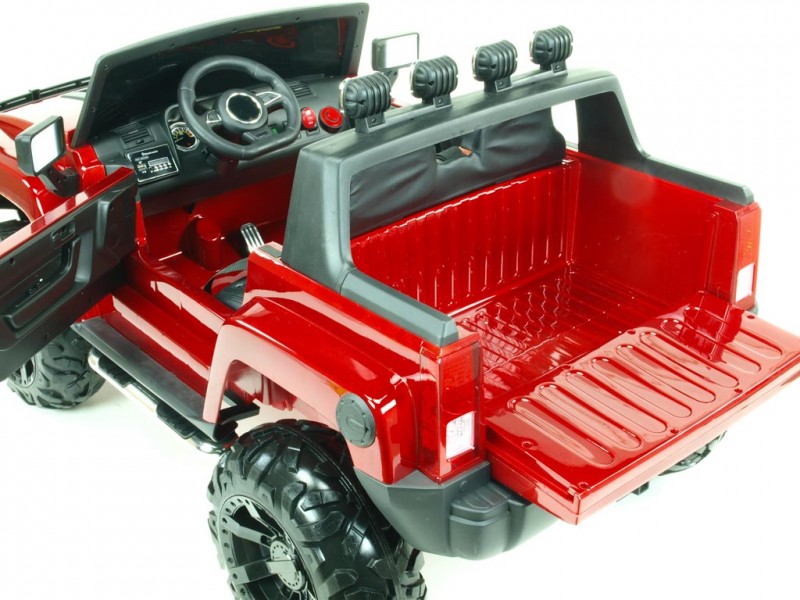 Hummer je navyše vybavený luxusnou čalúnenou sedačkou. Dvere sú otvárateľné, rovnako tak aj zadné čelo, kde sa nachádza nákladový priestor na drobnosti ako desiata, kľúče, a pod. rampa a kvalitné konštrukcie ponúkajú deťom maximálne bezpečnú jazdu . je navyše opatrená dvoma nastaviteľným bezpečnostným pásom.