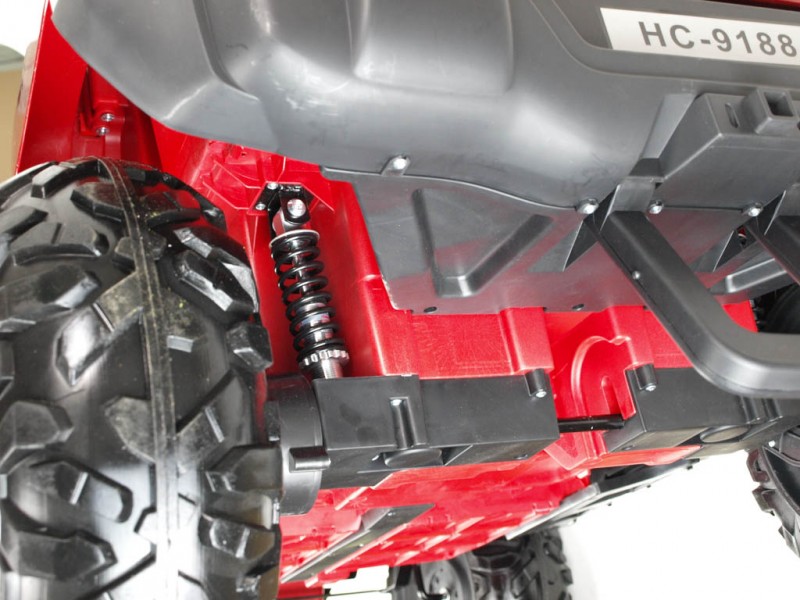 2 motory 12V/45W, batéria 12V/10Ah, náhon oboch zadných kolies, 2.4G diaľk. ovládanie s prednostnou jazdou, plynulé rozjazdy, odpruženie kyvných náprav s nastaviteľnými tlmičmi, 3 rýchlosti vpred a 3 vzad, LED osvetlenie, prehrávač so vstupom USB a bluetooth, zvukové efekty, klaksón, EVA kolesá, čalúnená sedačka, otvárateľné dvere a zadné čelo, výklop madlo na ručné ťahanie, lakované, vhodné pre j... Celý popis