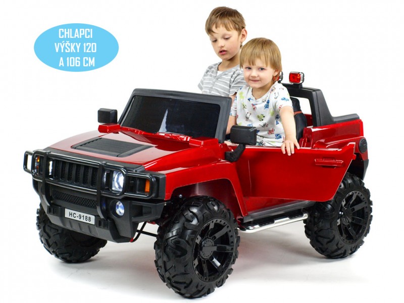 Hummer HJE ponúka úplne nový spôsob odpruženia prednej aj zadnej nápravy s možnosťou nastavenia tvrdosti tlmičov. Kyvné nápravy v kombinácii s masívnymi gumovými kolesami z EVA materiálu ponúkajú skutočne pohodlnú jazdu. o náhon oboch zadných kolies. Riadenie vozítka je úplne jednoduché a deti si ho rýchlo osvoja - stlačením nožného pedálu sa auto rozbehne, uvoľnením pedála automaticky zabrzdí Jazda na 3 rýchlostné stupne vpred a 3 vzad, doľava, doprava, rozjazdy sú plynulé . má pred jazdou na pedál prednosť, vďaka čomu je možné autíčko kedykoľvek zastaviť aj pri stlačenom nožnom pedáli. Vozítko tak máte neustále plne pod kontrolou a navyše si môžete užiť veľa zábavy spolu s deťmi.