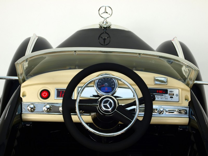 Úplne jedinečný veterán s bluetooth diaľkovým ovládaním, FM rádiom, prešívanou sedačkou s koženým poťahom, odpružením prednej nápravy, digitálnym voltmetrom a prevodovkou s tromi rýchlostnými stupňami pre jazdu vpred a tromi pre jazdu vzad. Auto má originálnu značku Mercedes-Benz .