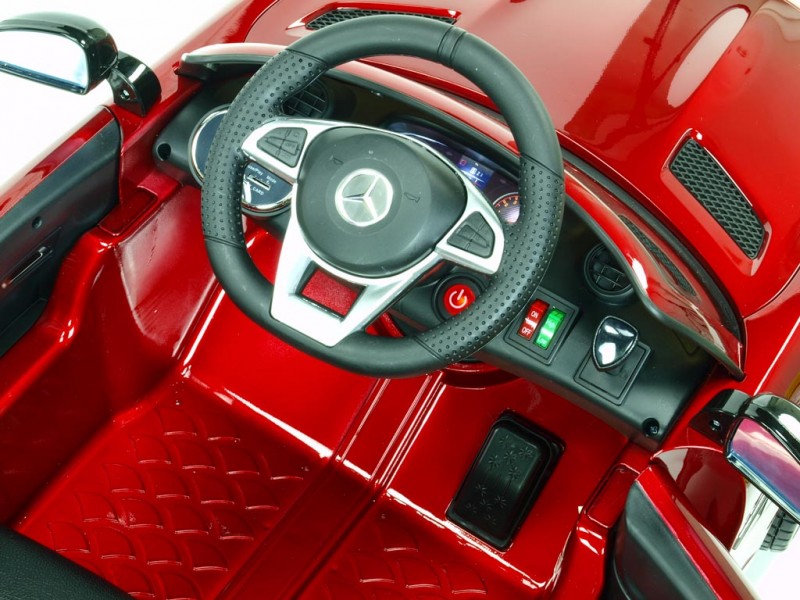 2 motory 6V/25W, 2 batérie 6V/4,5Ah, náhon oboch zadných kolies, 2.4G bluetooth diaľkové ovládanie s prednostnou jazdou, 3 rýchlosti vpred a 3 vzad, plynulé rozjazdy, vstupy pre USB, MP3, TF (pamäťovú) kartu, svietiace predné a zadné LED svetlá, osvietená palubná doska, voltmeter, zvukové efekty, klaksón, čalúnená sedačka, EVA kolesá, otvárateľné dvere, lakované, licencie Mercedes-Benz Celý popis