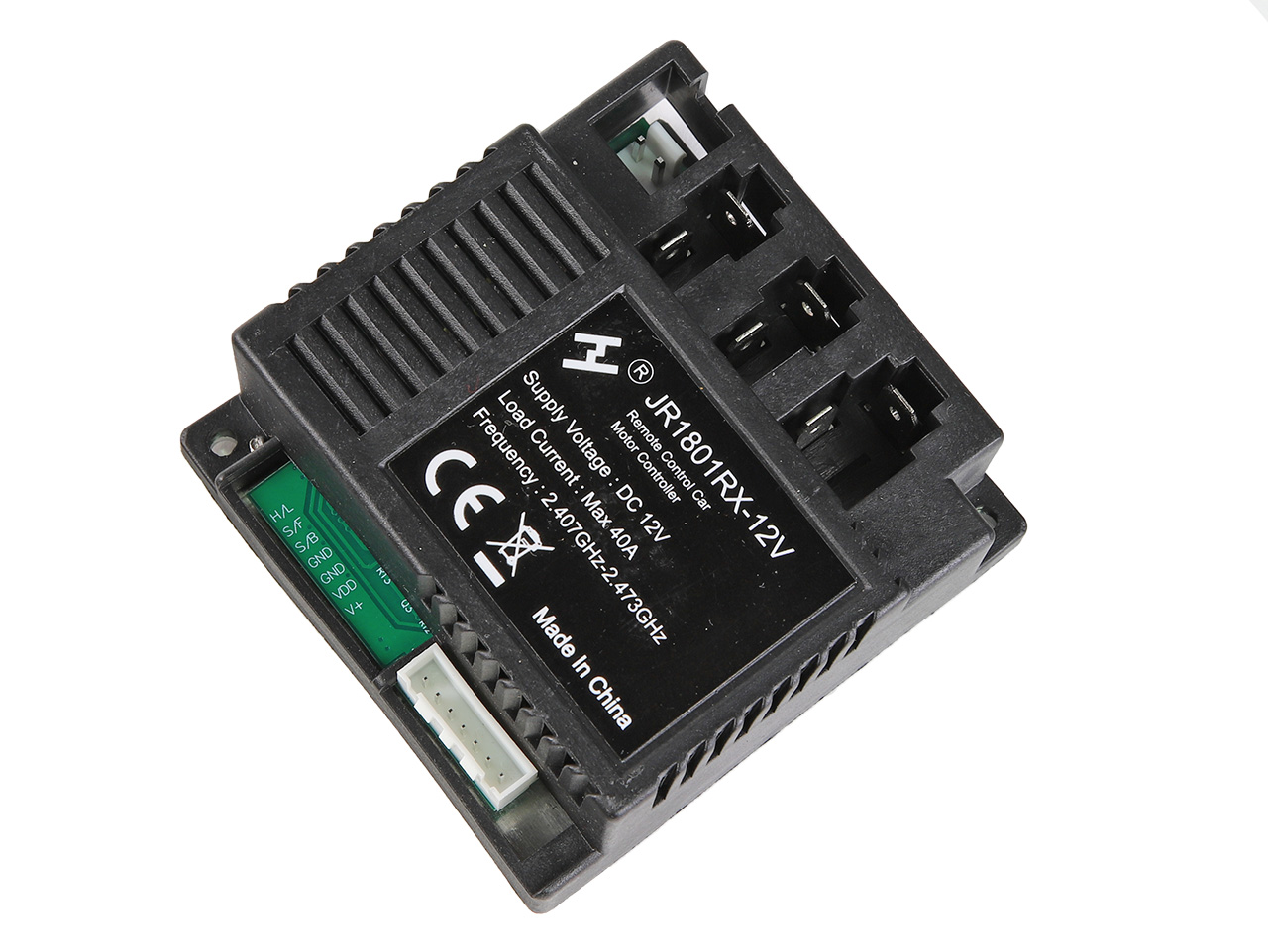 Riadiaca jednotka s typovým označením JR1801RX-12V verzia 40A je určená pre detské elektrické vozidlá; napätie 12 V. Pred objednaním starostlivo skontrolujte typové označenie (kód na štítku), prípadne aj konektory a koncovky káblov. Náhradná jednotka musí byť rovnaká ako pôvodná jednotka vo vašom vozidle, inak nebude fungovať. Celý popis