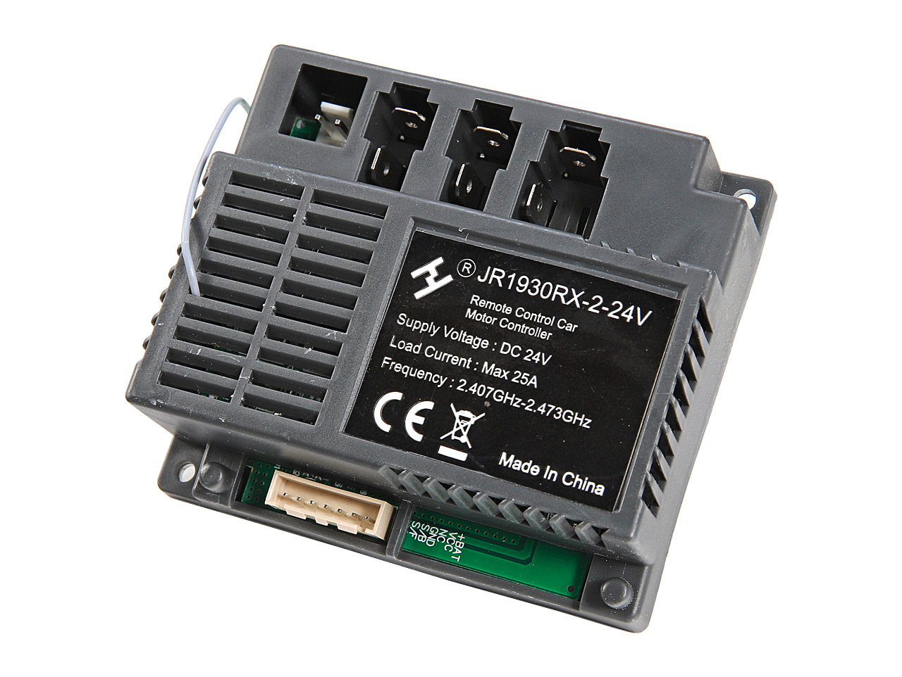 Riadiaca jednotka s typovým označením JR1930RX-2-24V je určená pre detské elektrické vozidlá; napätie 24 V. Pred objednaním starostlivo skontrolujte typové označenie (kód na štítku), prípadne tiež konektory a koncovky káblov. vozítku, inak nebude fungovať. Celý popis