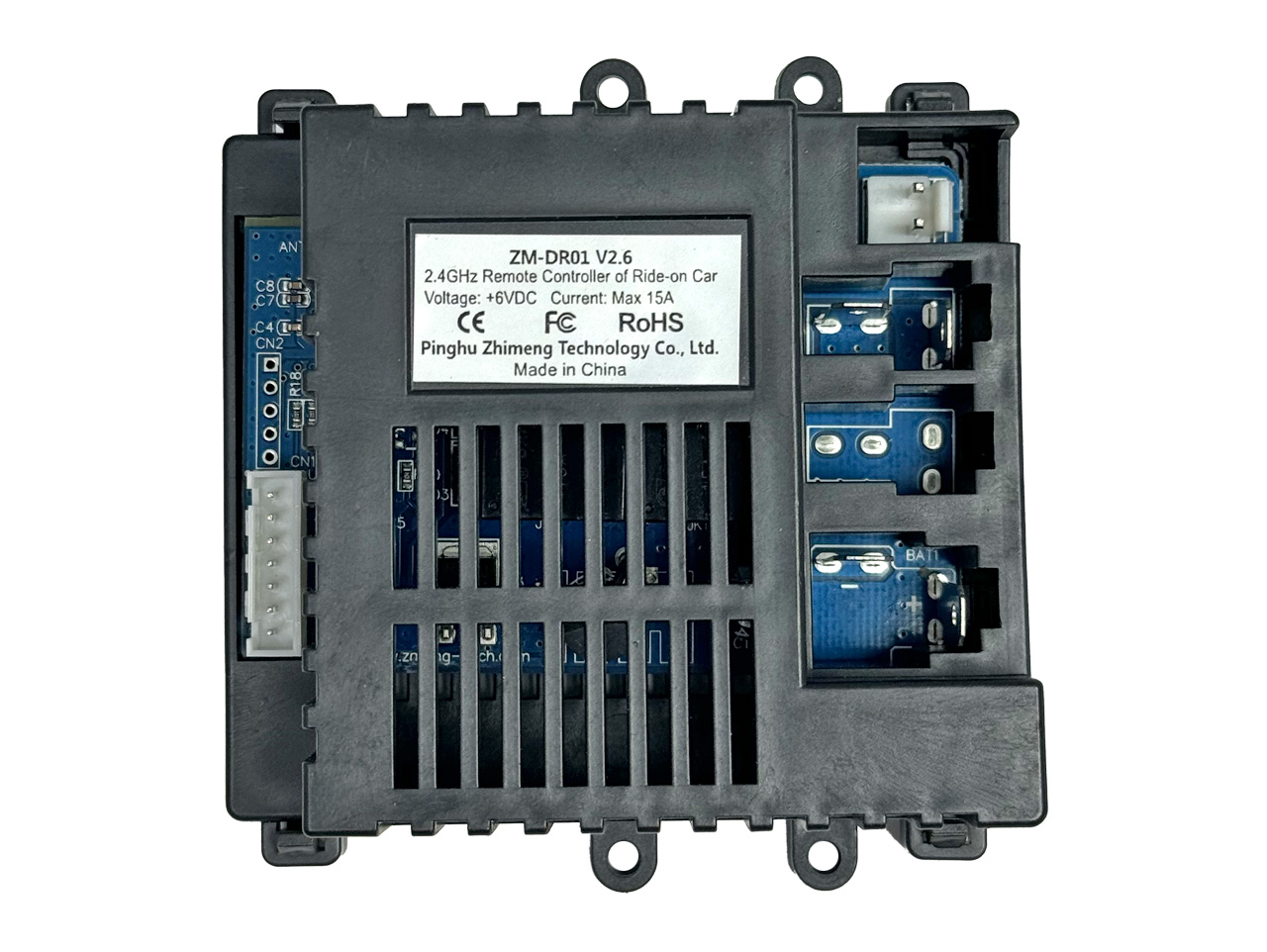 Riadiaca jednotka s typovým označením ZM-DR01 V2.6 je určená pre detské elektrické vozidlá; napätie 6 V. Pred objednaním starostlivo skontrolujte typové označenie (kód na štítku), prípadne tiež konektory a koncovky káblov. Náhradná jednotka musí byť rovnaká ako pôvodná jednotka vo vašom vozidle, inak nebude fungovať. Celý popis