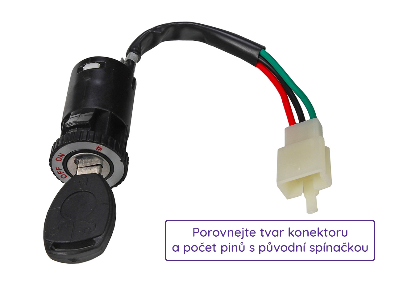 1. Spínacie skrinky do detských elektrických vozidiel sa líšia hlavne tým, či majú dve, alebo tri polohy pre otočenie kľúčikom . V prípade dvojpolohovej je možné otočiť kľúčikom štandardne do polohy vypnuté/štart. U trojpolohových je možné otočiť kľúčikom do polohy vypnuté / štart / zapnúť svetlá. Má vaša pôvodná spínacia skrinka rovnaký počet polôh ako táto náhradná spínacia skrinka?