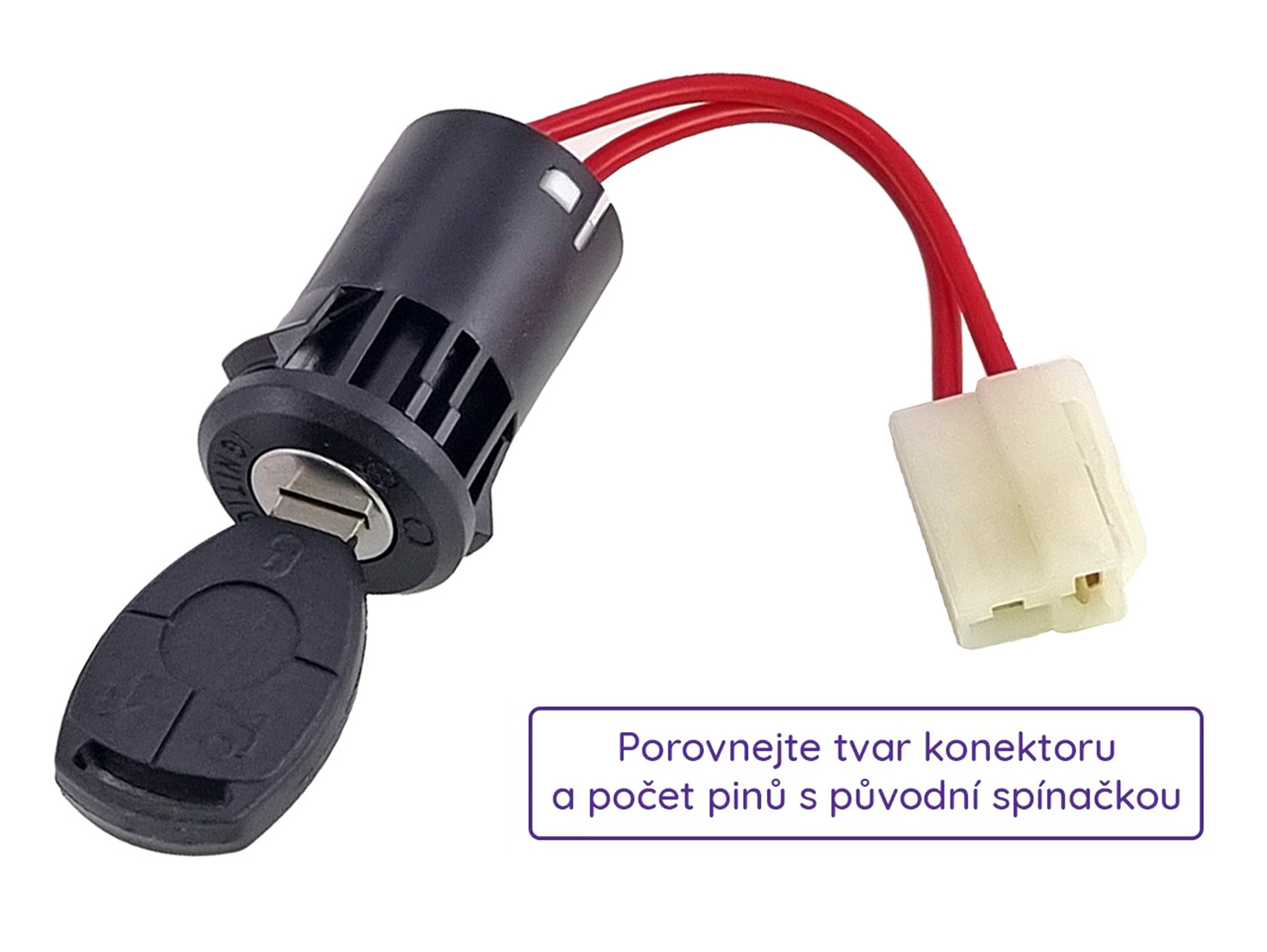 Spínacia skrinka s kľúčikom je určená pre elektrické autíčka a ďalšie detské vozítka. Spínačka má 2 polohy (vypnuté/štart) a 2 káble. Aby náhradná spínacia skrinka fungovala, uistite sa, že je rovnaká ako tá pôvodná vo vašom vozidle. Najprv je potrebné vybrať pôvodnú spínačku z vozítka von a porovnať ju. Kľúčiky do spínacích skriniek sú univerzálne. Celý popis