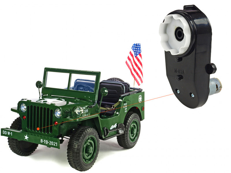 Náhradný elektrický motor s prevodovkou je určený pre detské elektrické autíčko džíp Willys trojmiestny verzia 24V (model číslo JH-101-24V) a slúži na ovládanie volantu pomocou diaľkového ovládača. Motor s prevodovkou je možné nasadiť na os s priemerom 10 mm.