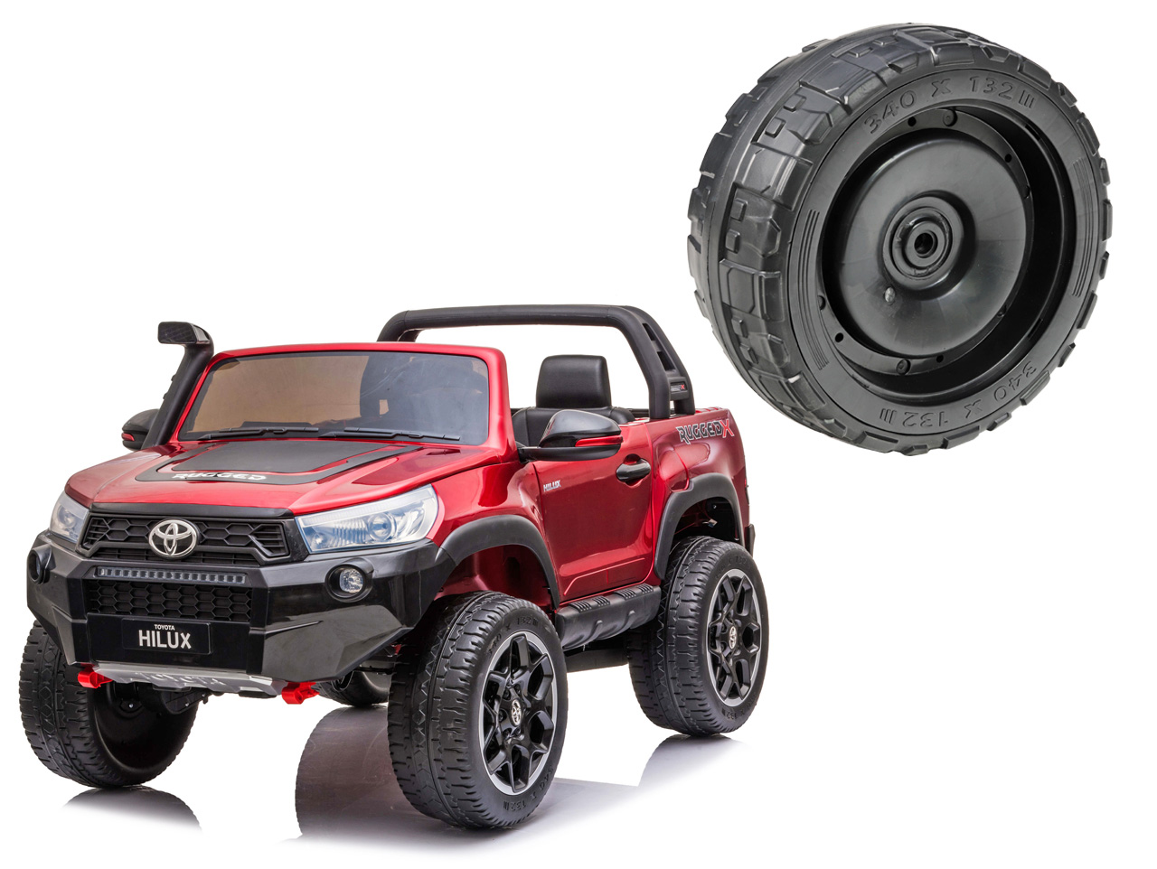 Určené pre detské elektrické autíčko Toyota Hilux (model č. DK-HL850). Bicykel je univerzálny, možno teda použiť na ktorúkoľvek stranu. Vyrobené z EVA materiálu. Priemer 340 mm, šírka 137 mm, je možné nasadiť na os s priemerom 12 mm. Celý popis