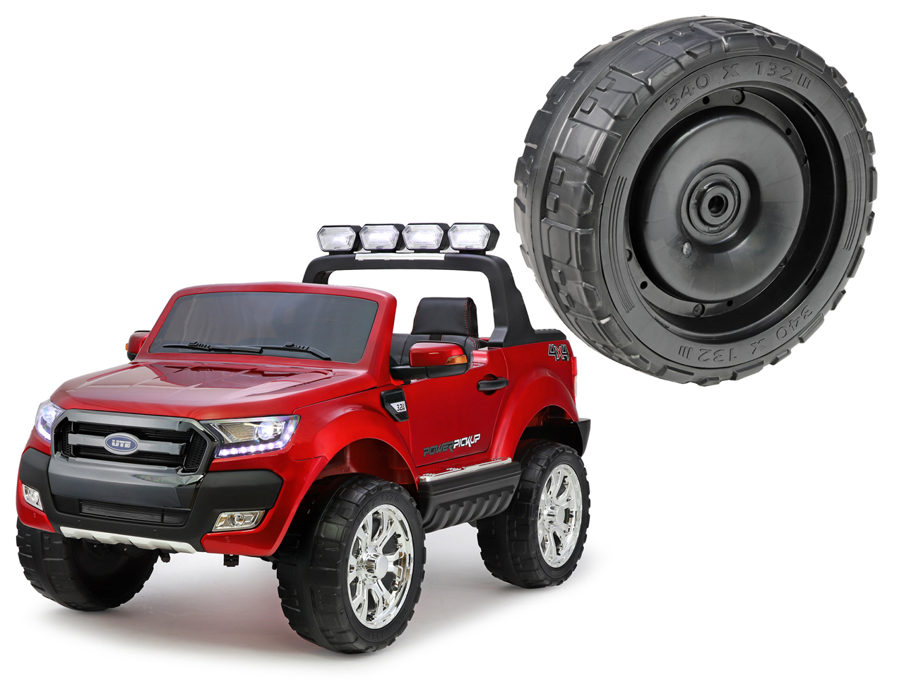 Určené pre detské elektrické autíčko andos Ranger pick-up 12V (model č. HJ650). Bicykel je univerzálny, možno teda použiť na ktorúkoľvek stranu. Vyrobené z EVA materiálu. Priemer 340 mm, šírka 137 mm, je možné nasadiť na os s priemerom 12 mm. Celý popis