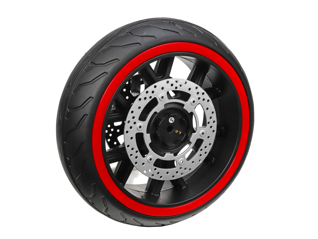 Náhradné plastové koleso s gumovým pásom je určené pre detskú elektrickú motorku CBR 650 (model číslo N999) Svietiaci ľad koleso je na prednú časť motorky.
