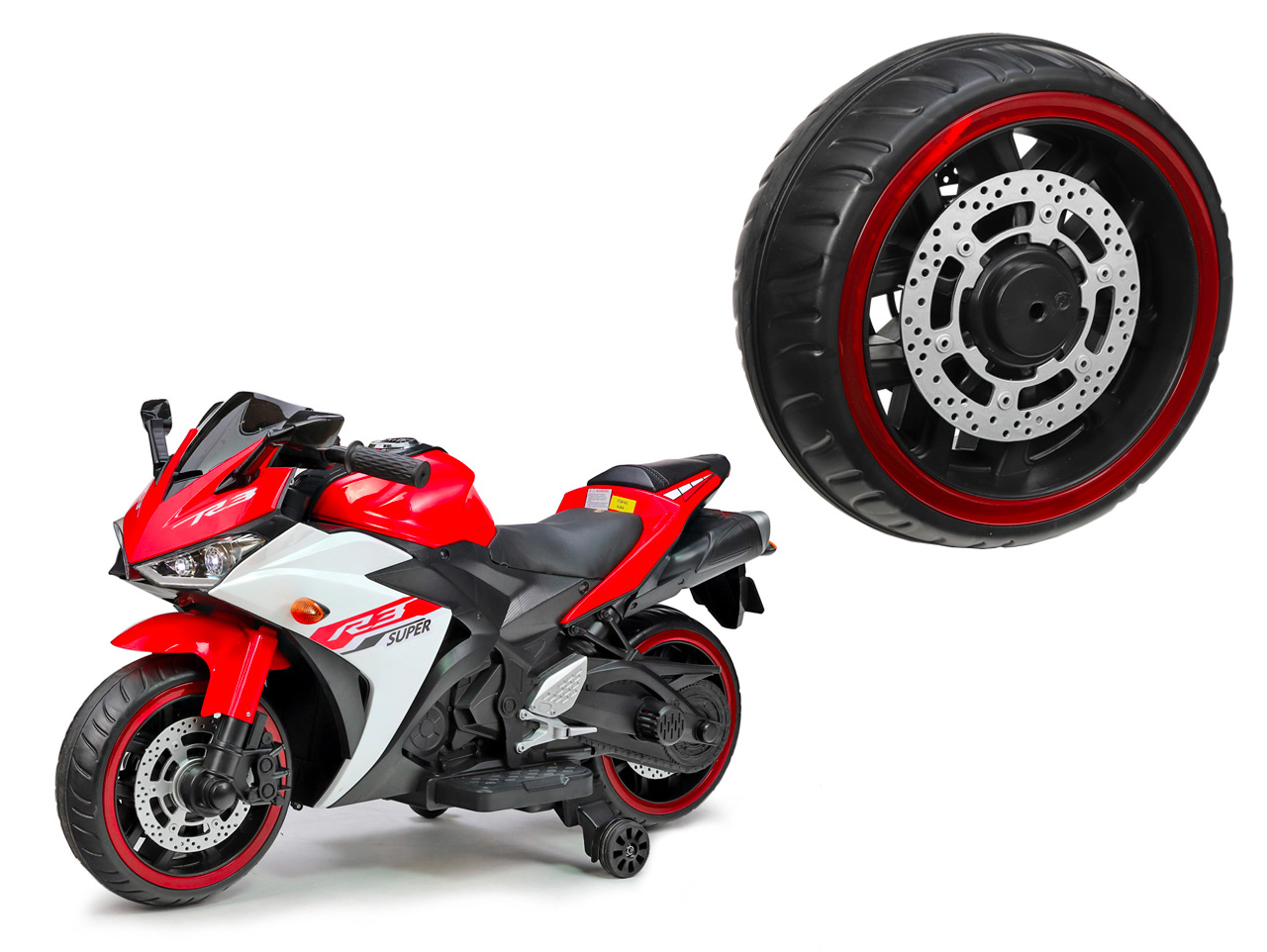 Určené pre detskú elektrickú motorku Supersport R3 (model č. N888). Svietiace LED koleso patrí na zadnú časť motorky. Jedná sa o plastový bicykel s gumovým pásom. Priemer 345 mm, šírka 132 mm, je možné nasadiť na os s priemerom 10 mm. Celý popis