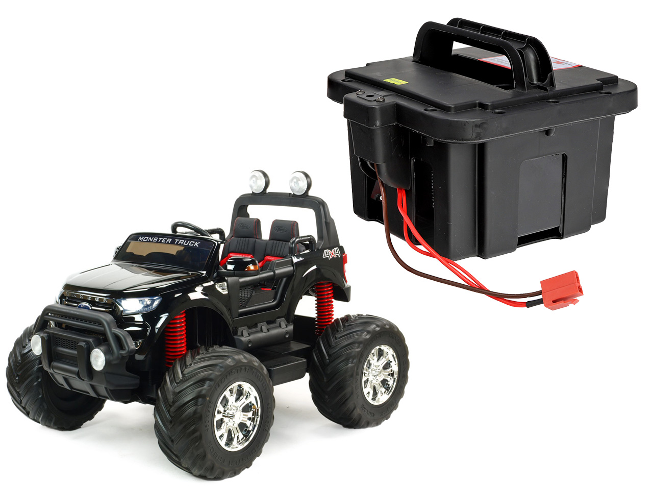 Náhradný batériový box je určený pre detské elektrické autíčko Ford Ranger Monster Truck 4x4 12V (model č. DK-MT550). Súčasťou boxu je batéria 12V/14Ah, resetovacia poistka a nabíjacia zásuvka. Box je možné využiť na okamžitú výmenu batérie v autíčku a zdvojnásobiť tak dojazd. Celý popis