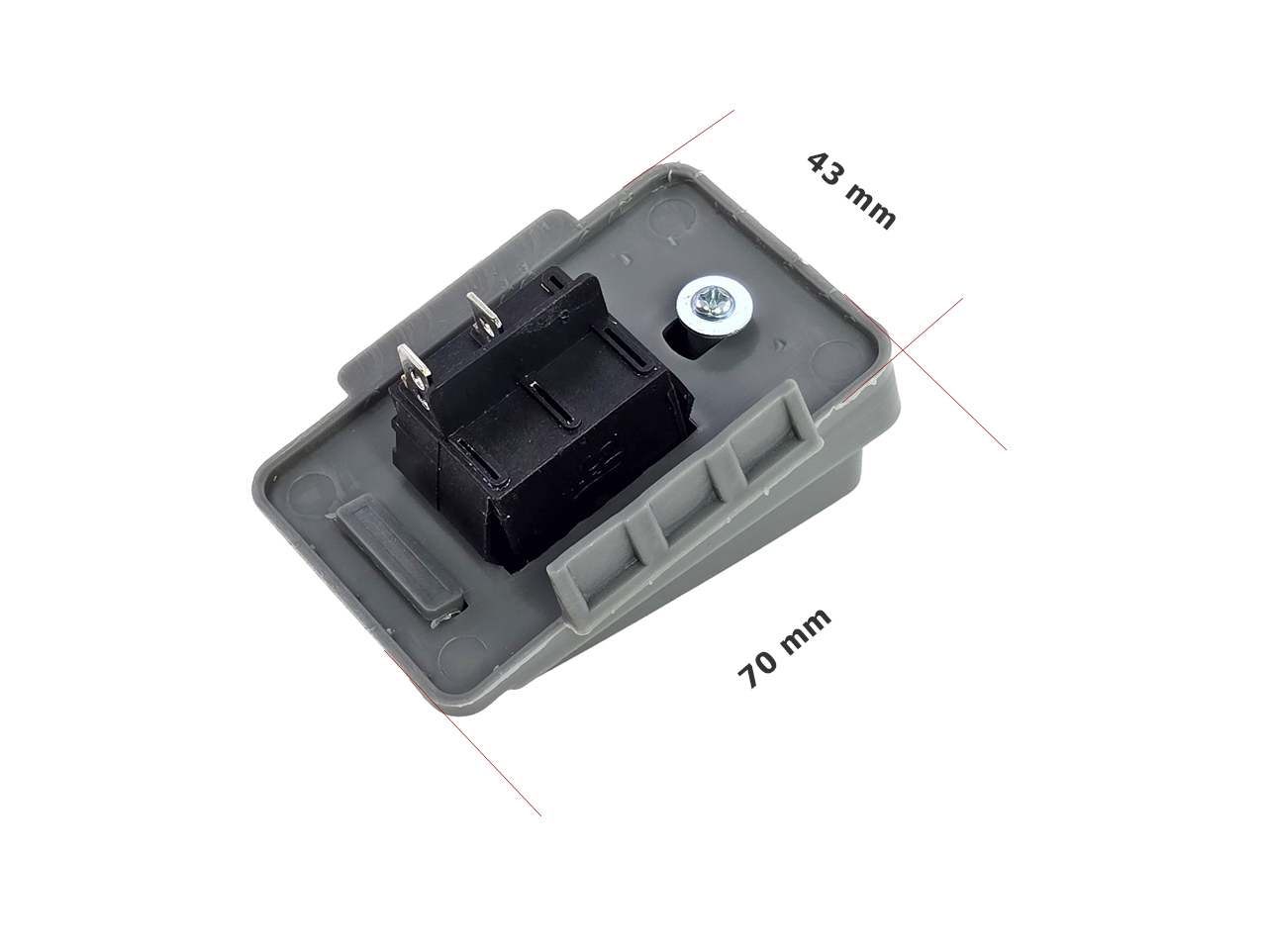 Náhradný pedál so spínačom 2 pin pre detské elektrické vozidlá. Obsahuje integrovaný spínač. Rozmer spodného rámčeka 70×43 mm. Pedál nie je univerzálny – pred nákupom porovnajte prevedenie, rozmery a typ zapojenia s pôvodným dielom. Celý popis