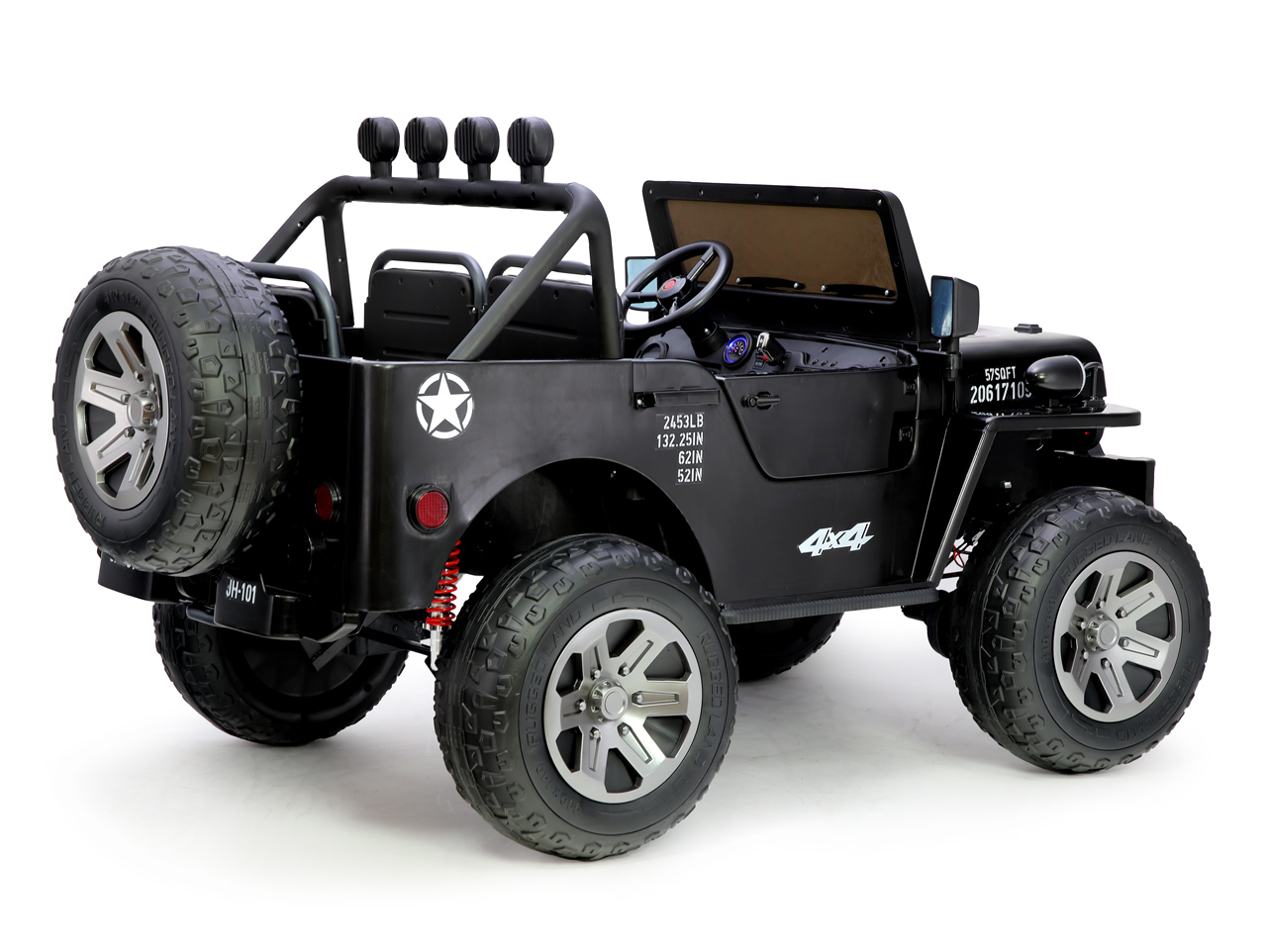 Patriot je obrí teréniak s poriadnym výkonom, robustnými kolesami a vysokým podvozkom. Každé kolo je poháňané motorom 24V/200W, takže celkový výkon autíčka činí 800 wattov. Patriot patrí medzi najvýkonnejšie elektrické vozidlá na trhu, takže ak hľadáte káru, s ktorou by deti mohli lietať po záhrade na svahu alebo na poľných cestách, máte vybrané.