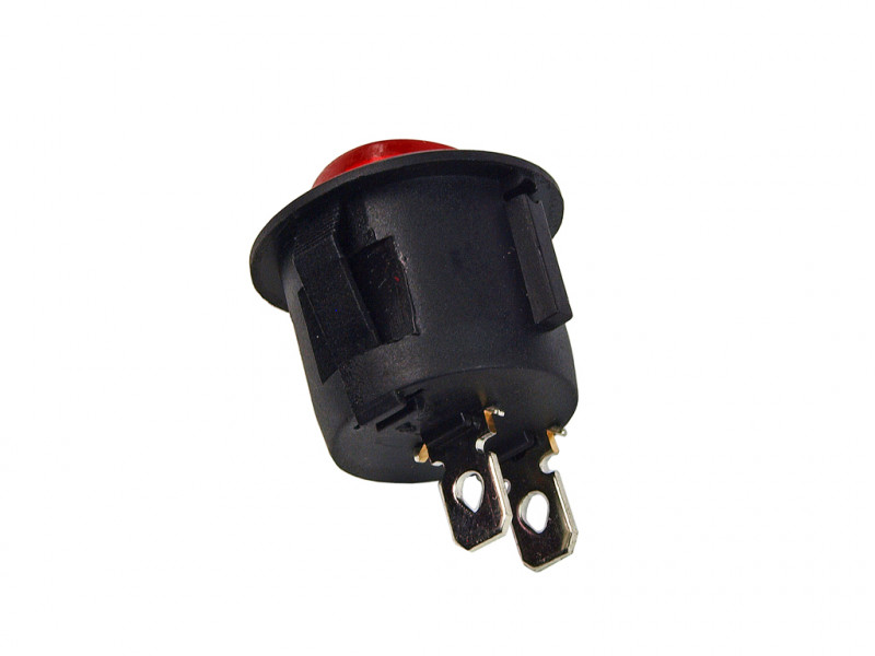 Náhradný okrúhly vypínač OI (ON/OFF) určený pre detské vozítka - elektrické autíčka, motorky, štvorkolky, traktory, buginy.