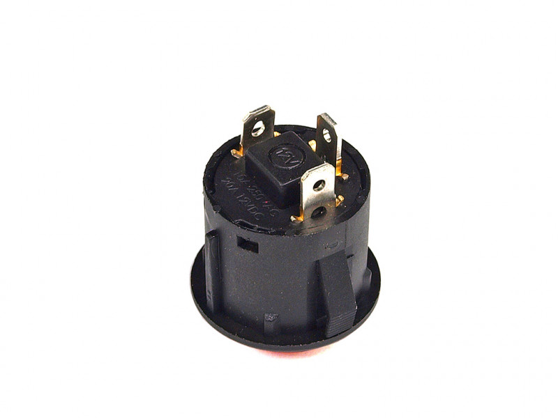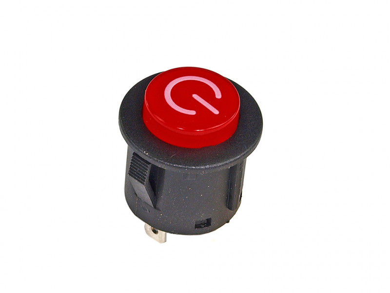 Náhradný okrúhly vypínač OI (ON/OFF) určený pre detské vozítka - elektrické autíčka, motorky, štvorkolky, traktory, buginy.