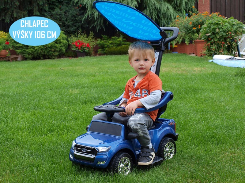 Jedinečné autíčko značky Ford s presným a detailným spracovaním originálneho modelu, ktoré poteší tých najmenších vodičov. Súčasťou balenia vozítka sú dve operadlá, medzi ktorými si môžete vybrať podľa potreby (viď fotogaléria). Ďalej sa tu ponúka možnosť jednoduchého nasadenia bezpečnostných madiel, vodiacej tyče a sklopnej striešky , ktorá môže poslúžiť ako príjemné tienidlo. Jazda vpred aj vzad na dva možné spôsoby - prvým je klasické manuálne riadenie cez nožný pedál, druhý je tlačenie vodiacou tyčou. Vodiacu tyč využijú najmä rodičia menej skúsených vodičov, ktorí si však techniku manuálneho ovládania čoskoro sami osvoja. Vozítko je opatrené jedným elektrickým motorom (24W / 6V) a náhonom jedného zadného kolesa. Ford Ranger je vybavený svietiacimi prednými LED svetlami a zvukovými efektmi ako klaksón, muzika a ďalšie. Pokiaľ by ste si priali deťom jazdu ešte o niečo spestriť, rozhodne využijete zabudované vstupy pre TF (pamäťovú) kartu a MP3 prehrávač. Stačí teda vložiť pamäťovú kartu alebo k autíčku pripojiť Vaše MP3 zariadenia a auto začne hudbu prehrávať v reproduktoroch. Pod sedačkou av zadnej časti auta sa nachádza úložný priestor vhodný pre drobnosti ako kľúče, desiata a pod. Vďaka kvalitnej konštrukcii a pevným ochranným držadlám okolo sedačky si aj tí najmladší užijú veľa bezpečnej zábavy . Autíčko váži iba 7 kg, takže je navyše ľahko prenosné a prepraviteľné. Určené pre deti od 2 rokov.